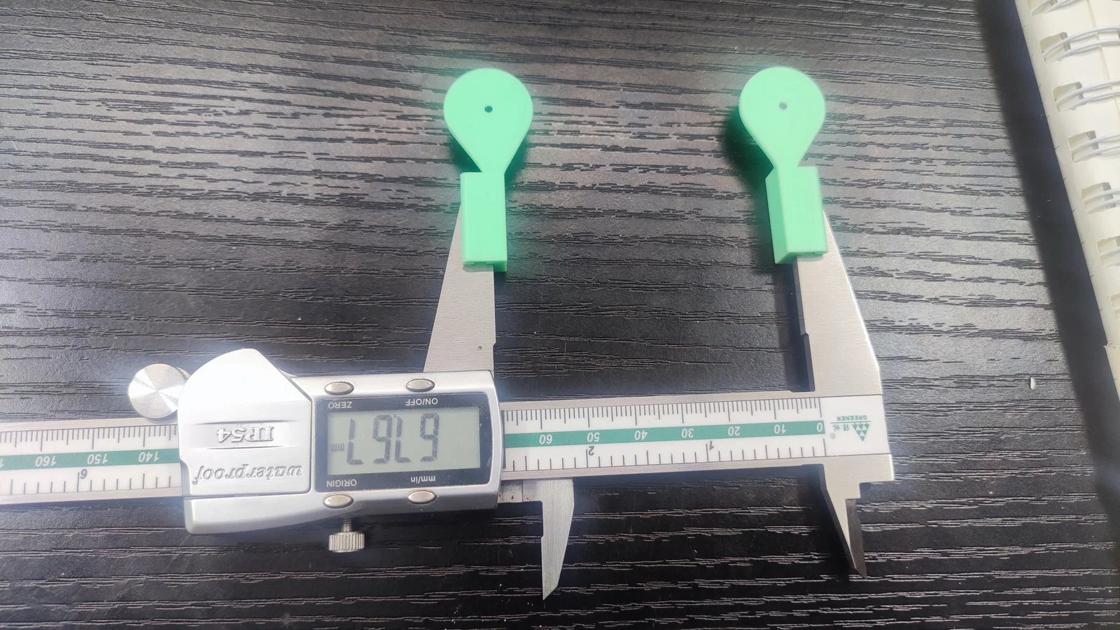 - Kiểm tra: Sau khi in xong, hãy gắn thử vào thước cặp và kiểm tra xem có bị lỏng lẻo hay không, nếu cần có thể dán thêm một lớp băng keo mỏng bên trong ngàm để cố định chắc chắn hơn.