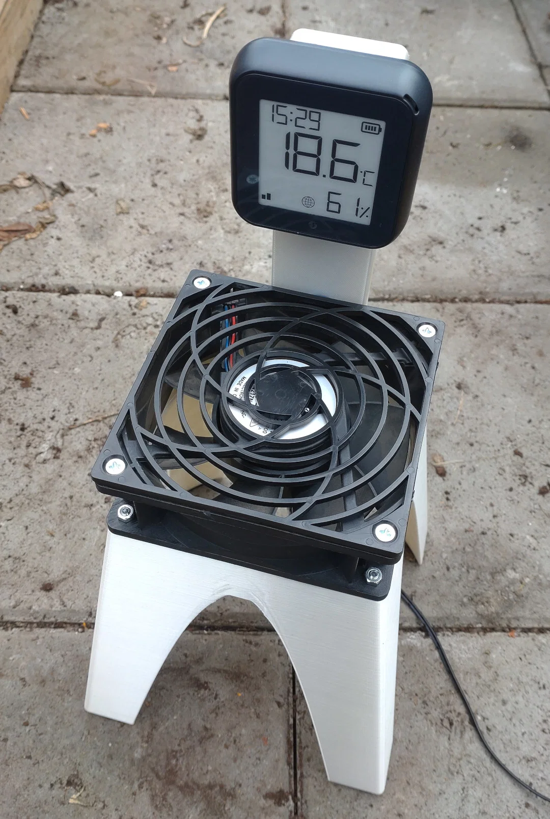 Đây là giá đỡ cho quạt DC 12 cm, đi kèm với một tay đỡ có thể chứa bộ chuyển đổi DC và cảm biến nhiệt độ, độ ẩm Shelly H&T Gen 3. Sản phẩm này được thiết kế làm giá đỡ quạt đối lưu cho nhà kính, nhưng bạn hoàn toàn có thể dùng cho những mục đích khác.