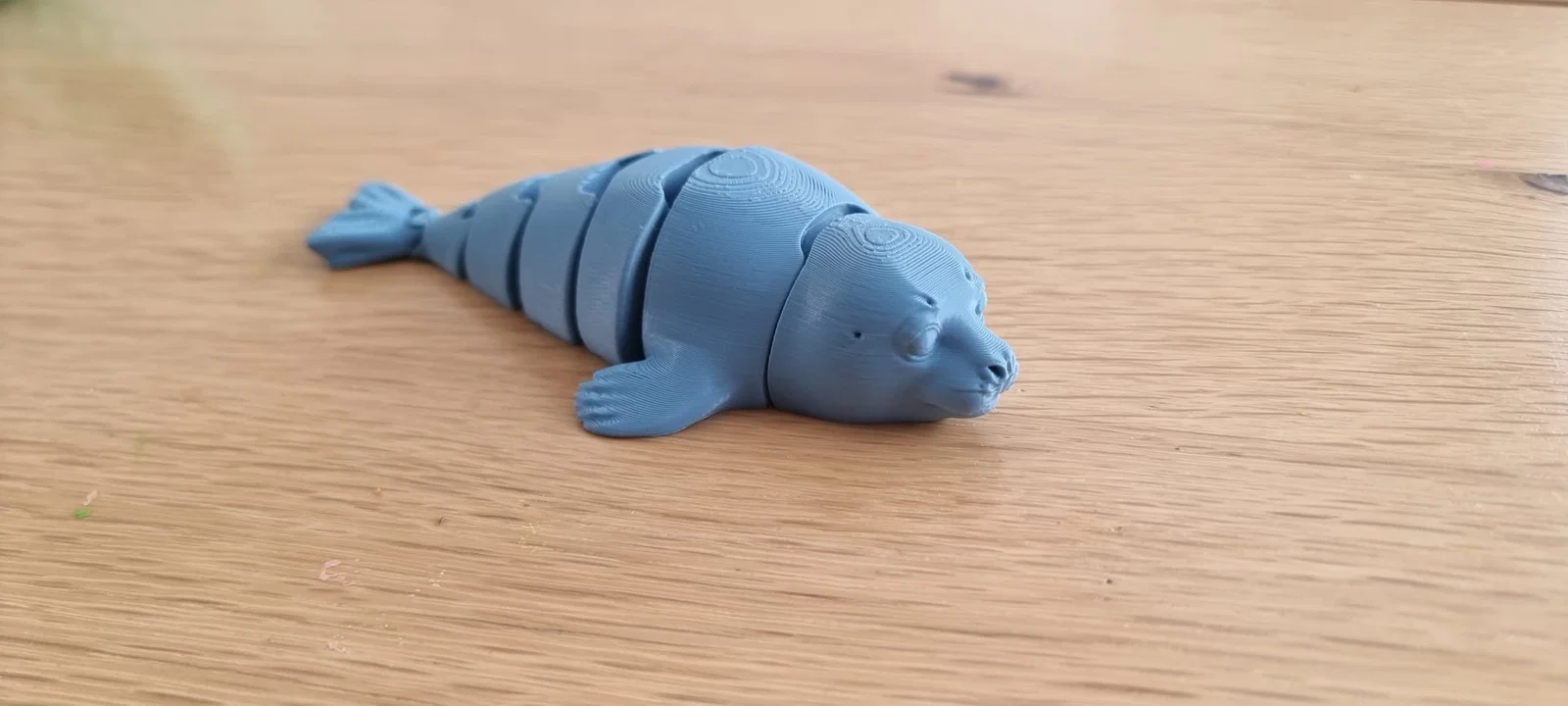 Mẫu in này mô phỏng hình dáng tròn trịa, "như khúc dồi" đặc trưng của hải cẩu hoặc sư tử biển, với đầy đủ vây trước nhỏ nhắn và đuôi chi tiết. Mô hình được chia thành sáu phân đoạn riêng biệt kết nối với nhau bằng các bản lề bên trong. Thiết kế này giúp chú hải cẩu có thể uốn lượn, cong người và "bơi" một cách chân thật mỗi khi bạn cầm trên tay.
