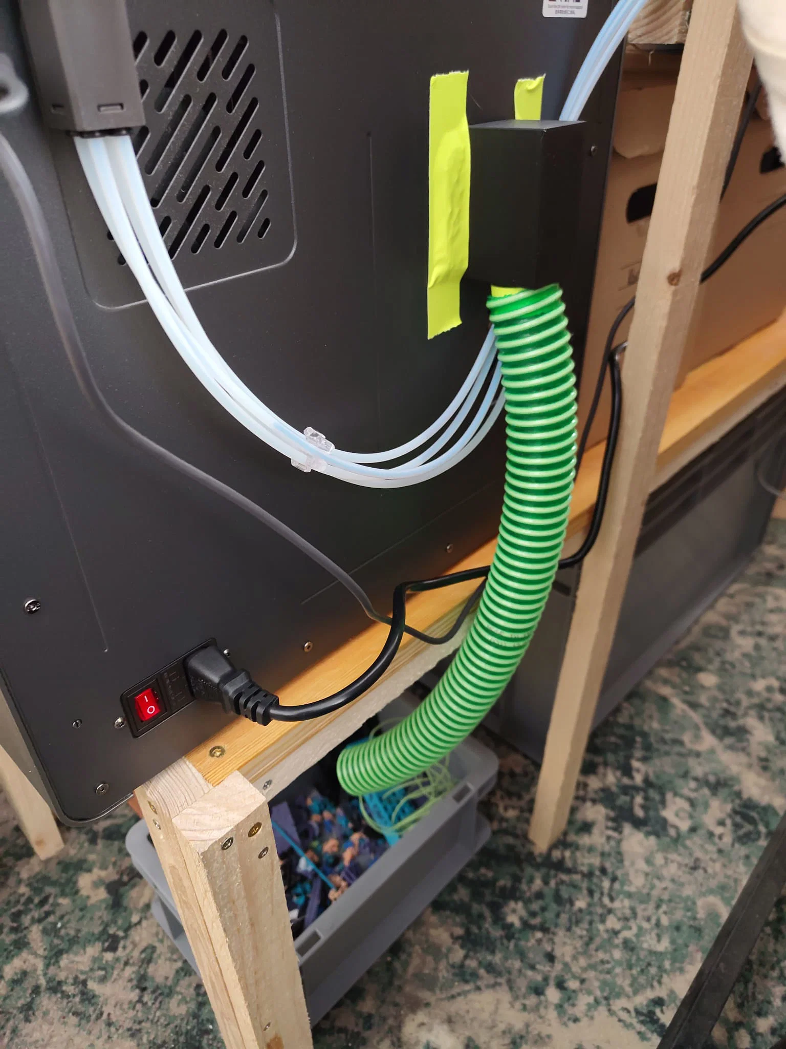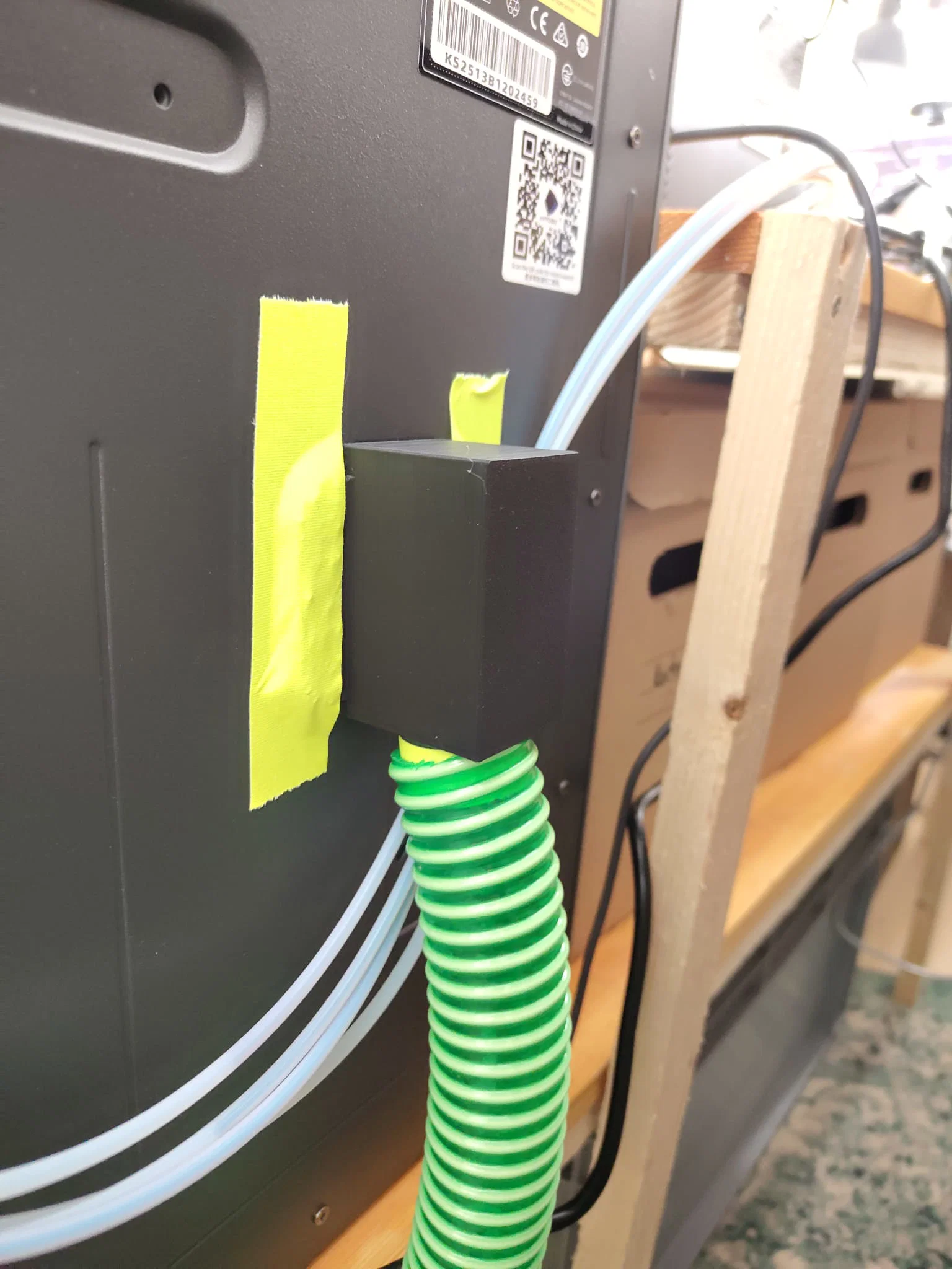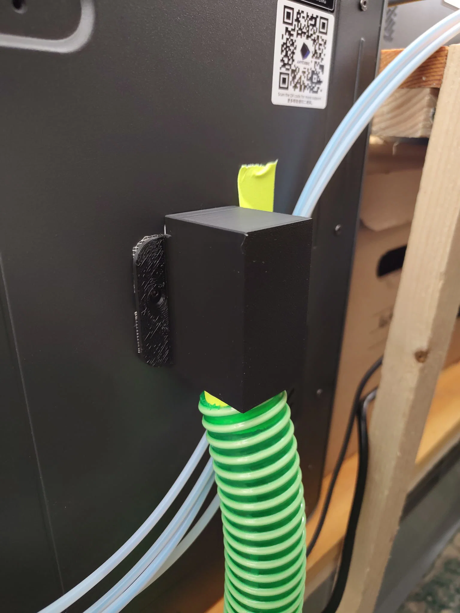 Phụ kiện này hoạt động dựa trên cơ chế gắn trực tiếp vào mặt sau của máy in. Nhờ thiết kế nhỏ gọn, bạn có thể dễ dàng cố định nó vào thân máy bằng băng dính chuyên dụng. Phía dưới của bộ phận này được thiết kế để khớp với ống dẫn mềm (đường kính khoảng 32mm), đóng vai trò như một đường ống thoát rác chủ động. Đây là một sáng kiến nhỏ nhưng giúp cải thiện đáng kể luồng công việc, giúp bạn tập trung vào việc thiết kế và in ấn mà không phải loay hoay dọn dẹp các mẩu nhựa thừa sau mỗi lần đổi màu.