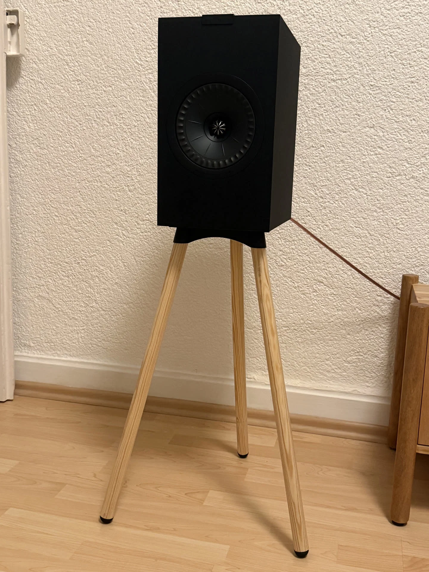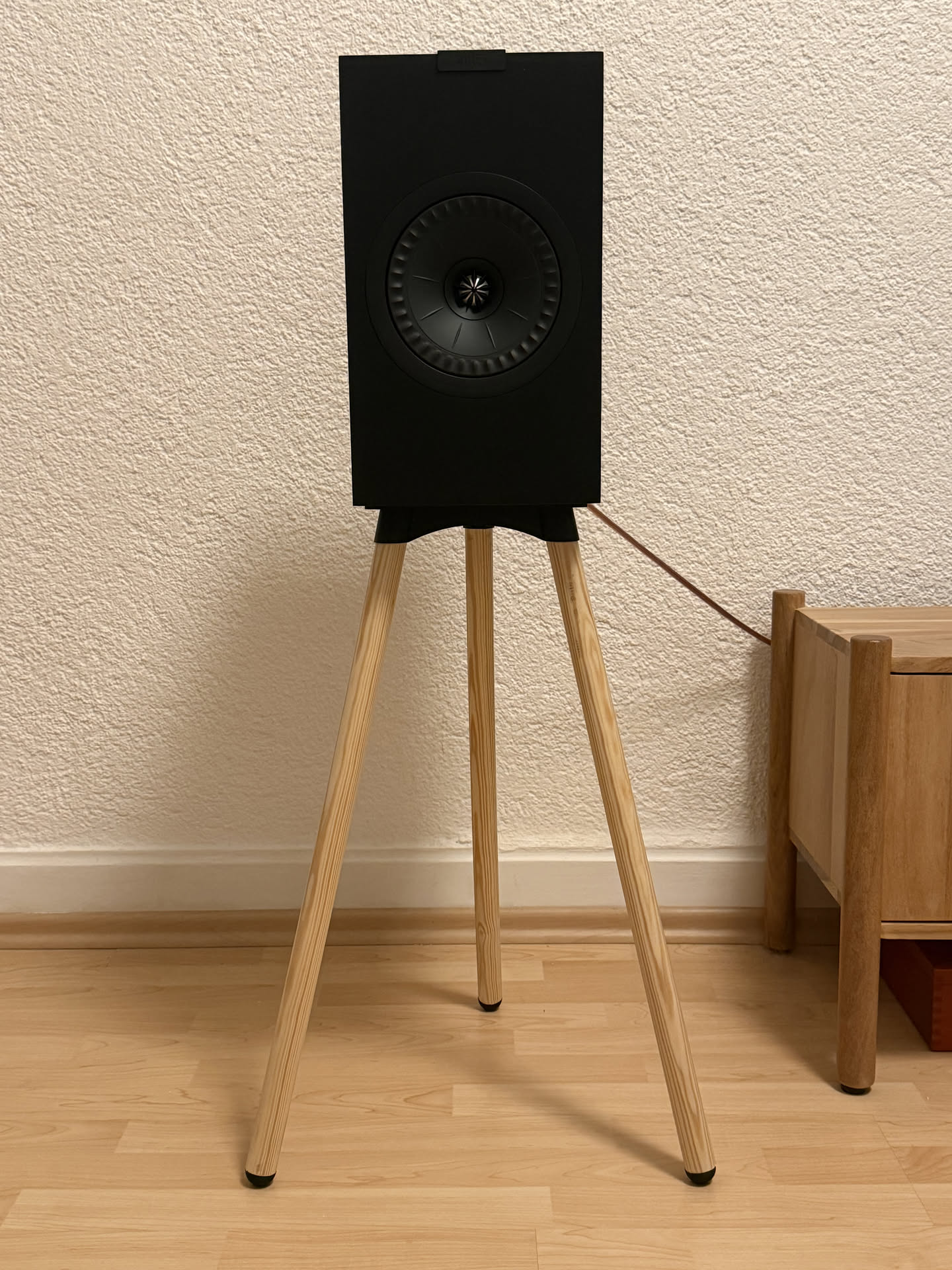 Tự tay thiết kế chân loa tripod chắc chắn, phù hợp với nhiều dòng loa bookshelf như KEF Q3 Meta. Thiết kế sử dụng kết hợp nhựa PLA, TPU chống rung và các thanh gỗ tròn, mang lại vẻ ngoài hiện đại và tối giản cho không gian giải trí tại gia của bạn.