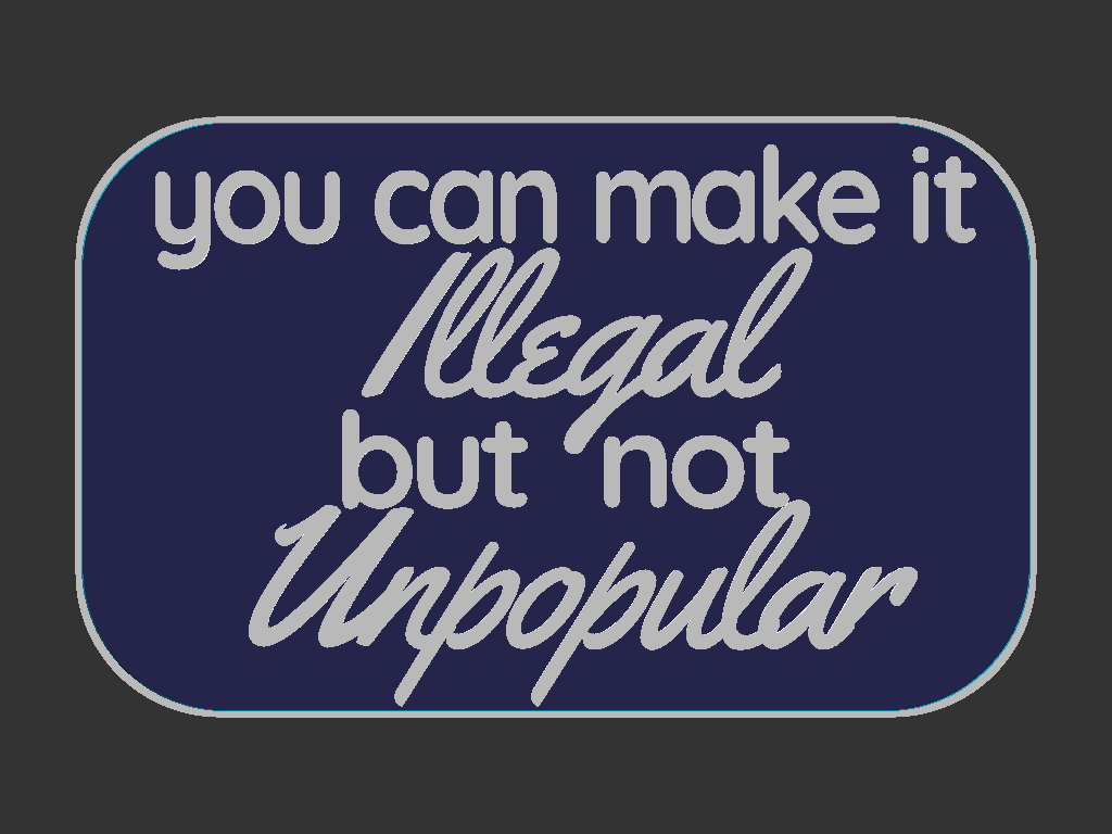 Biển báo kích thước 100x160mm, nội dung ghi "You can make it illegal but not Unpopular" (Bạn có thể làm nó bất hợp pháp nhưng không thể làm nó hết phổ biến).