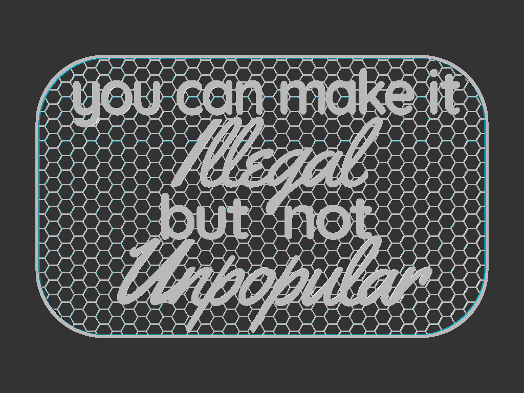 Biển báo với thông điệp "Bạn có thể cấm nó nhưng không thể ngăn nó phổ biến". Kích thước 100x160mm, kèm file Mesh và Solid để in dễ dàng. Nên đổi màu nhựa ở độ cao 1mm để đạt hiệu quả thẩm mỹ tốt nhất.