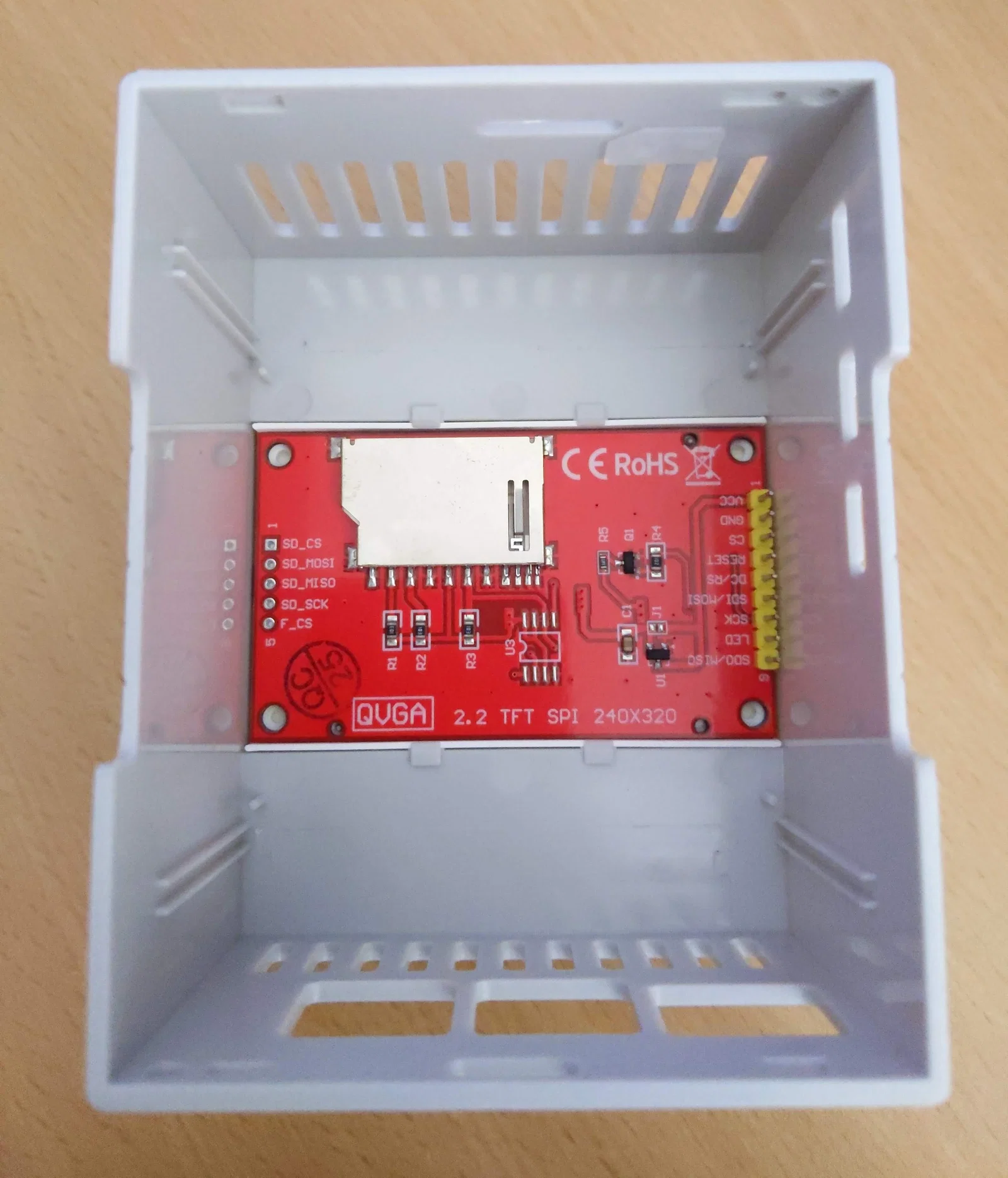 Đây là một giá đỡ nhỏ được thiết kế để lắp vừa vào case gắn DIN rail cho Raspberry Pi hiện có bán trên Aliexpress. Giá đỡ này chỉ vừa với loại case đó, vốn có các phiên bản cho Raspberry Pi 3, 4 và 5 (anh chị nhớ chọn đúng loại để khớp với vị trí cổng kết nối của từng dòng Pi nhé). Hãy xem hình ảnh để nhận diện loại case này, dù tại thời điểm viết bài thì đây là mẫu case duy nhất trên Aliexpress vừa có chuẩn gắn DIN rail vừa có mặt che trong suốt. Nó chỉ phù hợp với màn hình LCD SPI 2.2" cũng có trên Aliexpress. Anh chị hãy xem hình chụp mặt sau của PCB màn hình, chú ý dòng chữ "QVGA 2.2 TFT SPI 240X320" để tìm loại tương tự. Có rất nhiều kích cỡ khác nhau nhưng loại 2.2" này rất phổ biến ở nhiều người bán. Lưu ý đầu kết nối 9 chân ở một cạnh, khe cắm thẻ SD (không dùng tới) và việc màn hình này sử dụng giao thức SPI để nhận dữ liệu từ Pi. Giá đỡ này sẽ khớp vào các ngàm có sẵn trên case để cố định, sau đó sử dụng lỗ vít để bắt ốc. Mình dùng vít M2.5 ngắn chuyên dụng cho nhựa (cũng mua từ bộ kit trên Aliexpress), nhưng vít M2 cũng rất ổn, và vì trọng lượng không đáng kể nên không nhất thiết phải dùng vít nhựa. Vít M3 có thể hơi to vì lỗ trên PCB nằm sát vách case, khiến đầu vít dễ bị cấn vào vỏ. Case đi kèm với 4 "chốt" nhỏ cần dùng kìm cắt dây để loại bỏ thì giá đỡ mới lắp vừa - hãy xem ảnh có cái kìm cắt màu xanh. Mình in bằng nhựa PLA nhưng dùng chất liệu nào cũng được, miễn là đủ độ mềm để bắt vít. Đây là mô hình 3D đầu tiên mình thiết kế nên chắc chắn còn nhiều thiếu sót, mong anh chị thông cảm nhé!