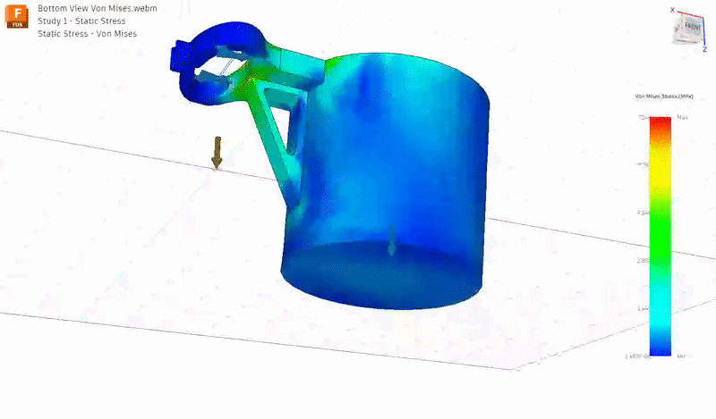 Đã có kiểm tra FEA cho vui thôi. Mình khuyên là chỉ nên để bình nước tối đa 500mL trở xuống thôi nhé.