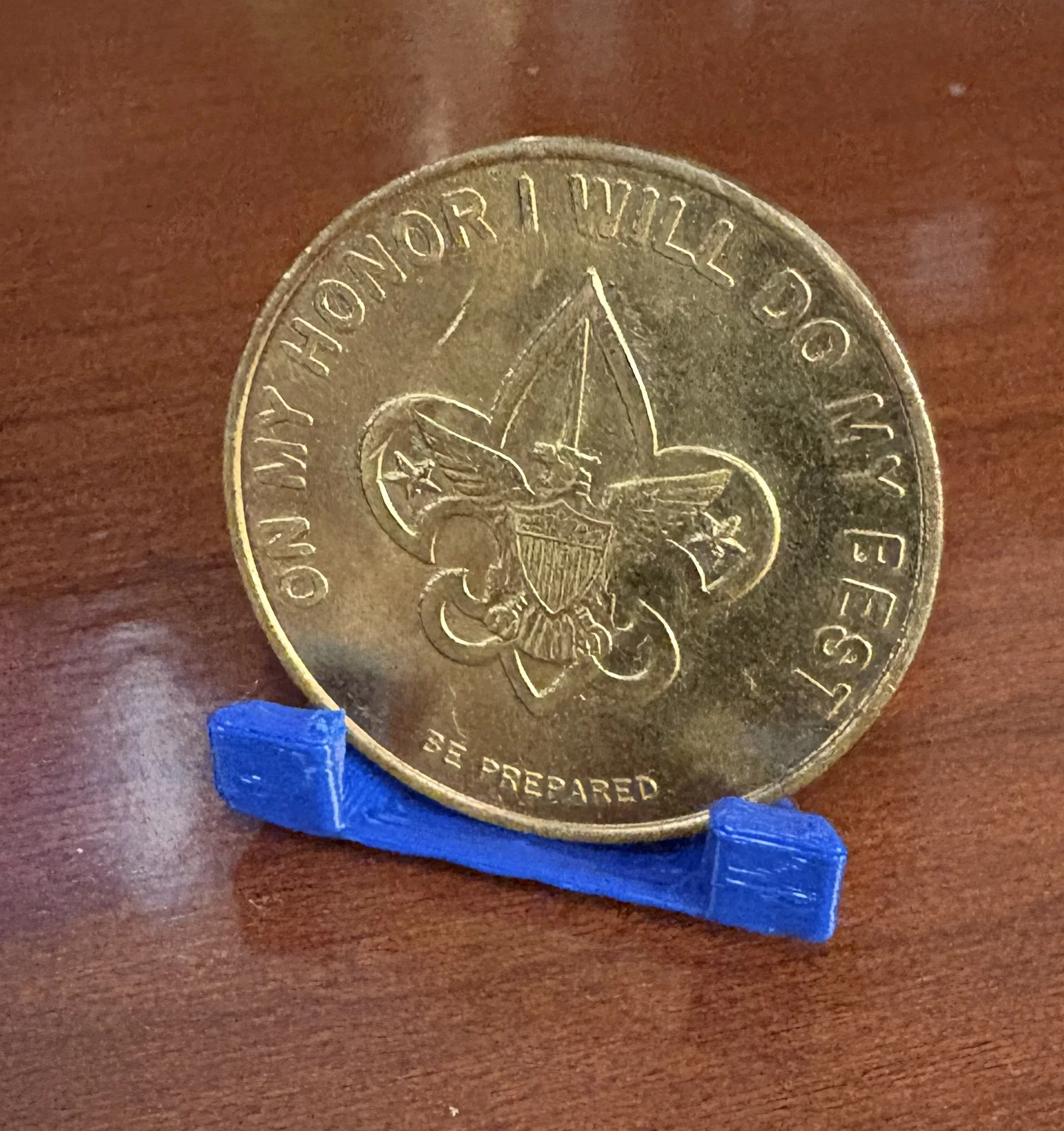 Tủ trưng bày xu của mình có bề mặt trơn nên trước đây các đồng xu phải đặt nằm phẳng, rất bất tiện khi muốn ngắm nghía. Mình thiết kế các giá đỡ này để in siêu nhanh, không cần support và phù hợp với hầu hết mọi kích thước của challenge coin.