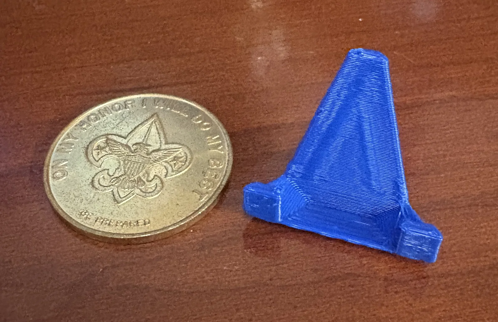 Những đồng xu lớn nhất của mình dày hơn 5mm một chút, nhưng mình muốn giá đỡ này cũng dùng được cho cả các đồng xu nhỏ hơn. Góc nghiêng của giá đỡ tạo sự cân bằng rất tốt giữa tầm nhìn và độ ổn định.