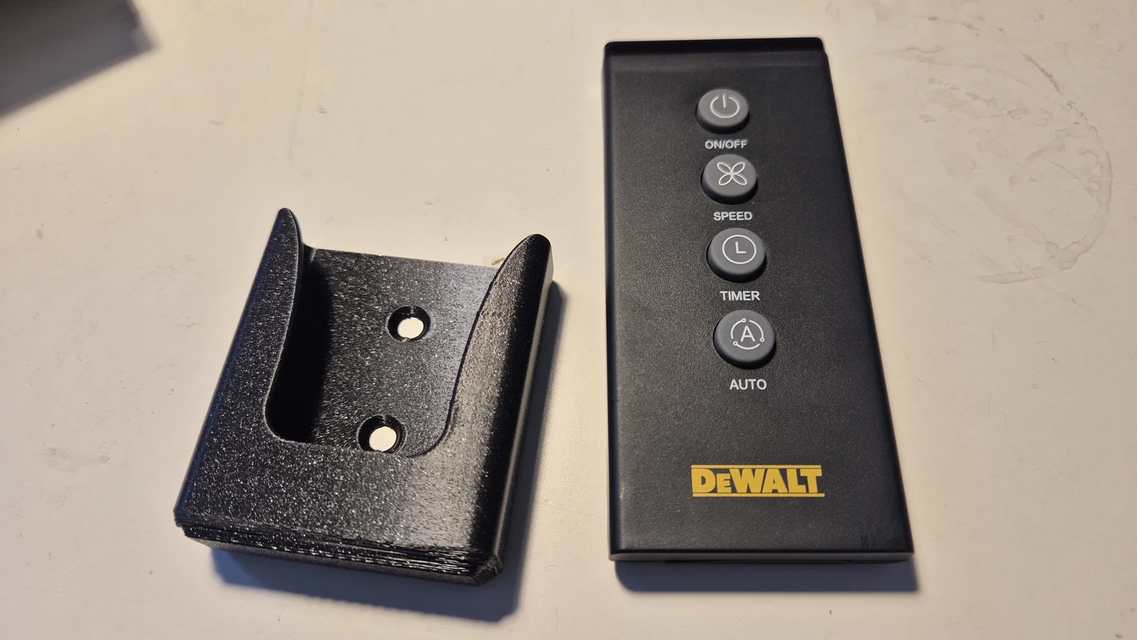 Máy lọc không khí DeWalt DWXAF201 có đi kèm một chiếc remote, mà món này thì rất dễ bị thất lạc, đừng hỏi sao tui biết nhé. Thế nên giờ bạn có thể in cái giá treo này để cố định nó lên tường cho chắc chắn.
