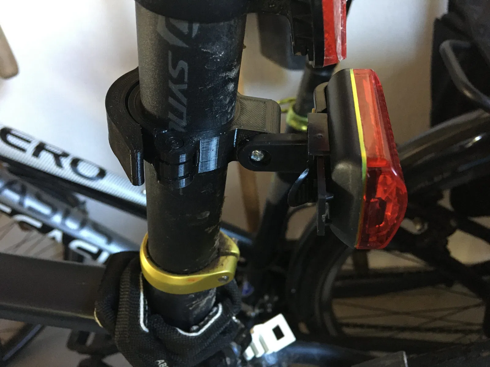 Một giá đỡ để gắn đèn hậu vào ống yên của xe đạp.