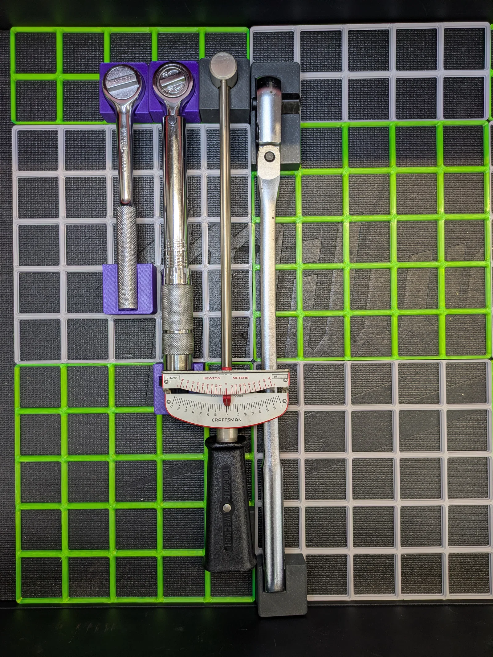 Đây là các khay đựng Gridfinity dành cho các mẫu cờ lê lực và cần siết lực cổ điển dưới đây: