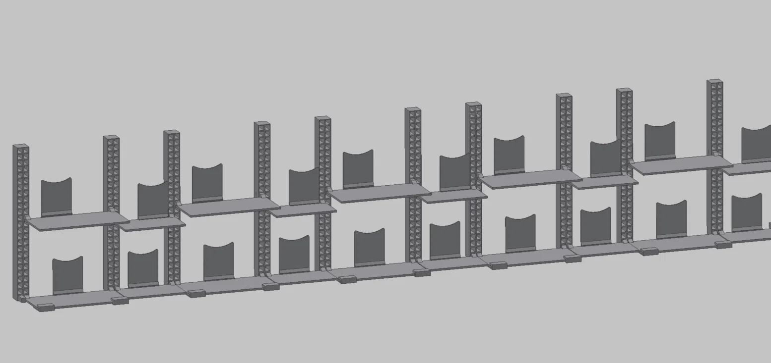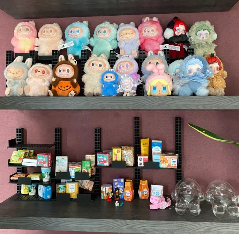 Bạn gái mình không còn chỗ trên kệ để trưng bày bộ sưu tập Labubu nữa. Tình cờ là siêu thị địa phương Albert Hein có chương trình khuyến mãi mấy món đồ chơi mô phỏng thu ngân. Thế là mình quan sát và thấy các siêu thị hay dùng kệ lắp ghép. Mình đã in các trụ và bệ đỡ này, thiết kế theo dạng module để tối ưu hóa việc in ấn.