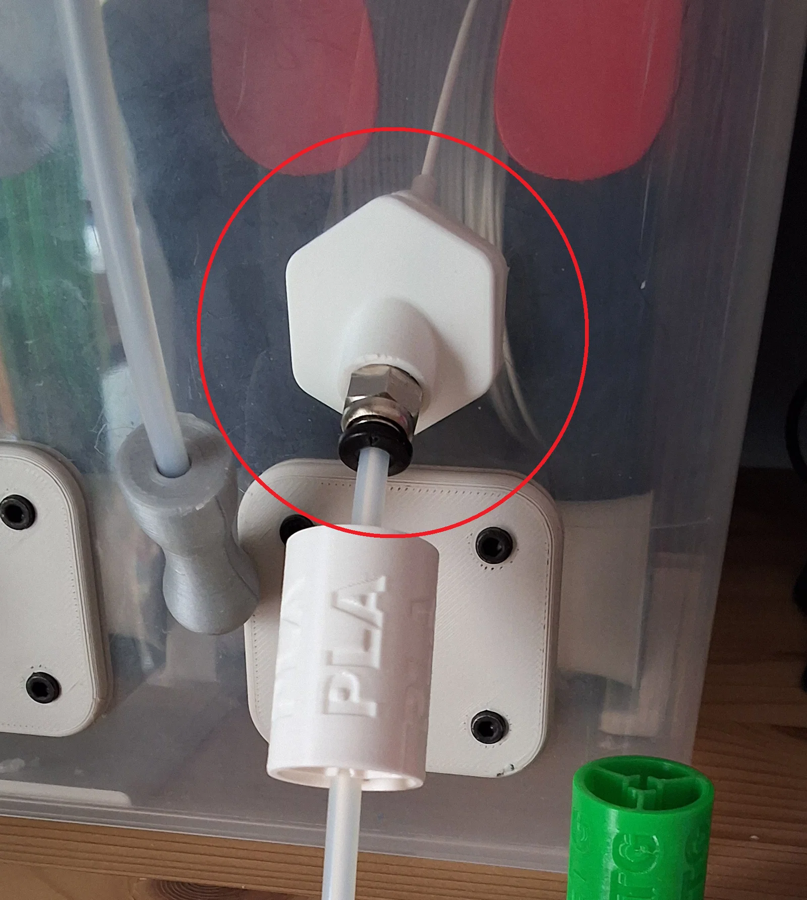 Giải pháp dẫn nhựa filament từ hộp chống ẩm một cách gọn gàng và chuẩn xác. Thiết kế đi kèm hướng dẫn chi tiết cách khoét lỗ, lắp ráp đơn giản với đầu nối PC4-M10 và ống PTFE, hỗ trợ tùy chỉnh góc độ qua file Fusion 360.