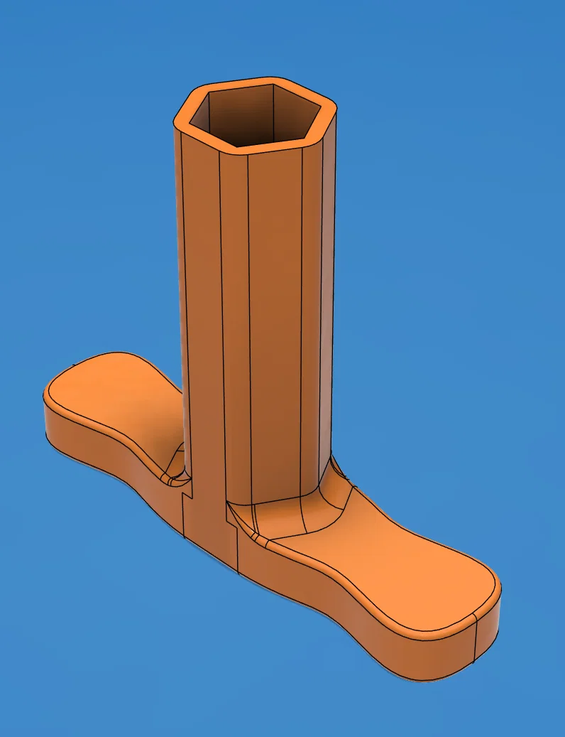 Góc dẫn cho đường đi của nhựa là 35°. Nếu góc dốc hơn sẽ đòi hỏi đường kính lỗ lớn hơn. Các góc nông hơn có thể được điều chỉnh thông qua file Fusion bằng cách thay đổi thông số Neigungswinkel.