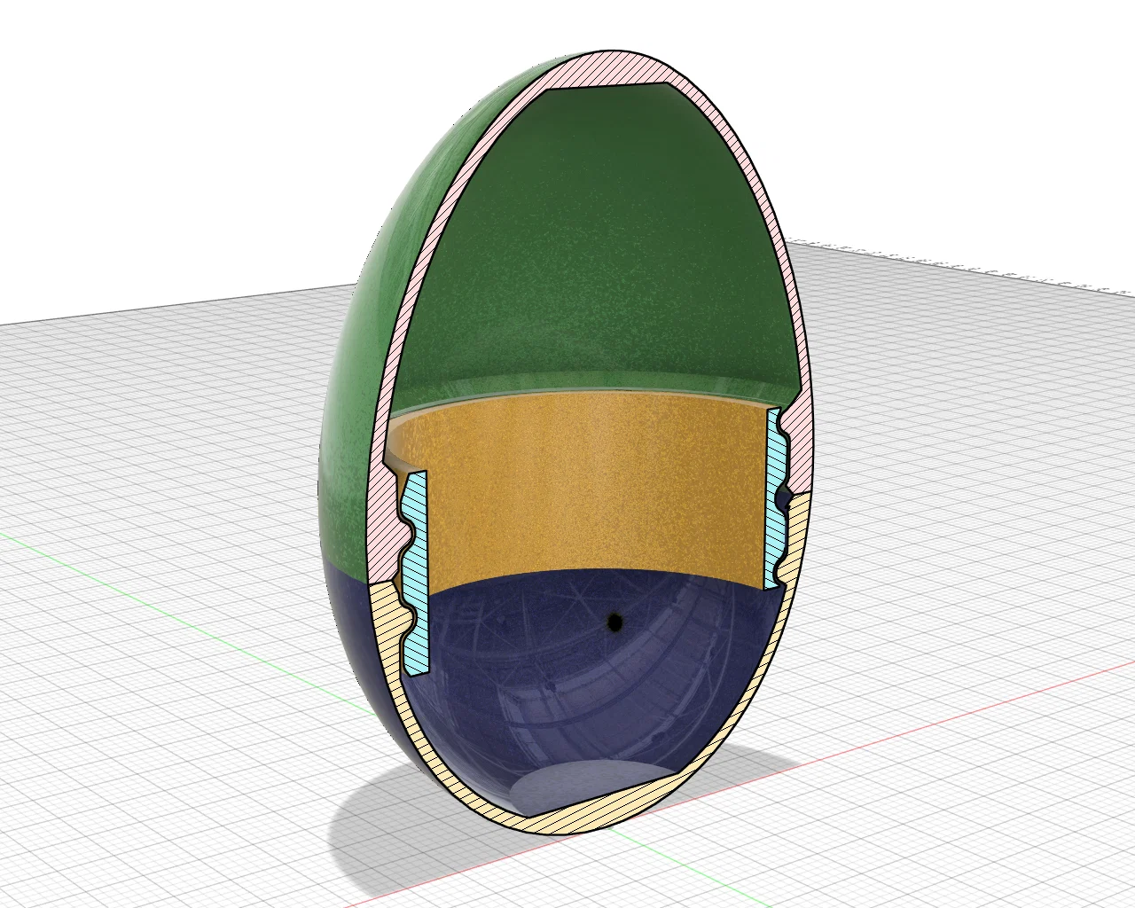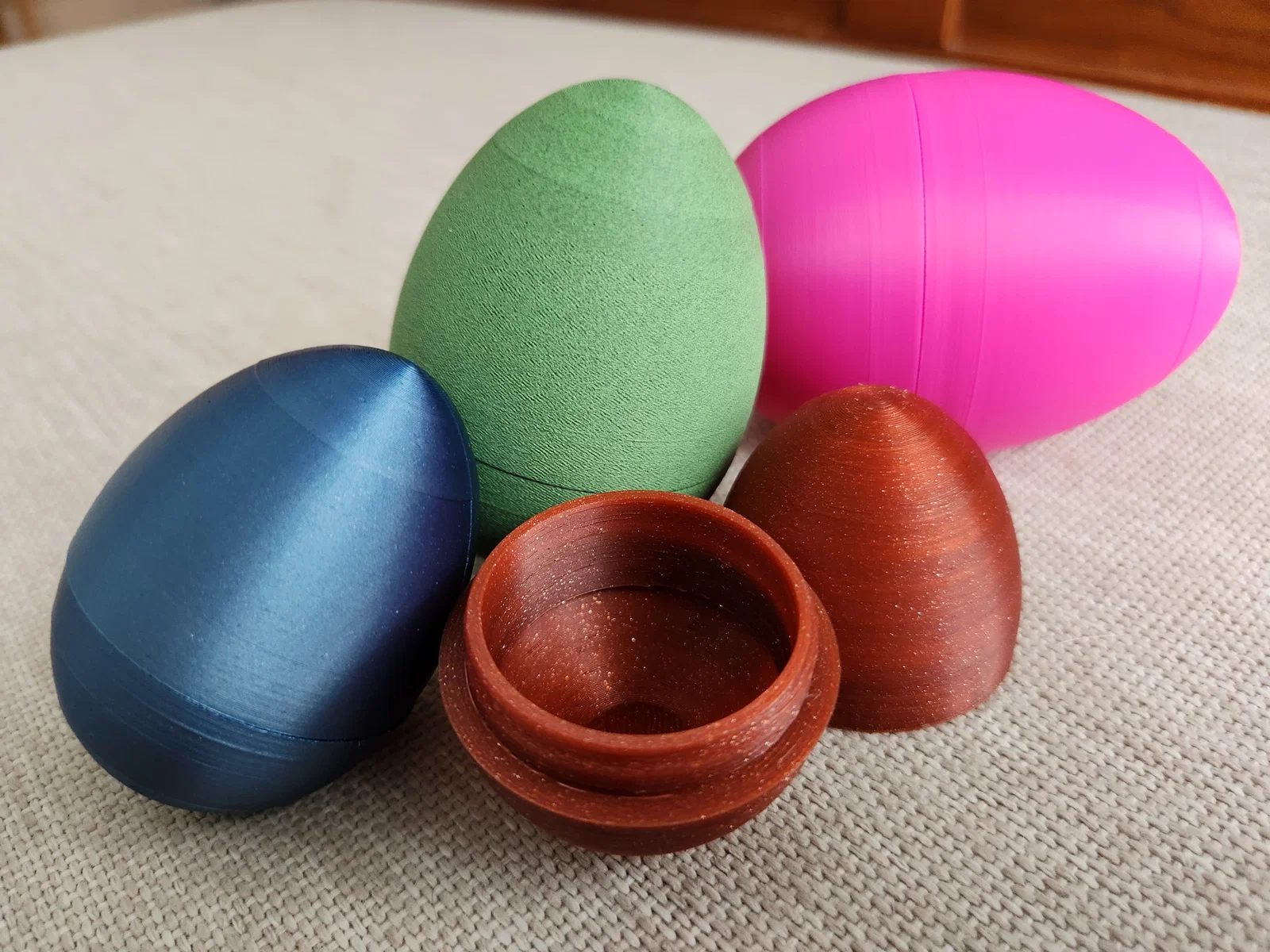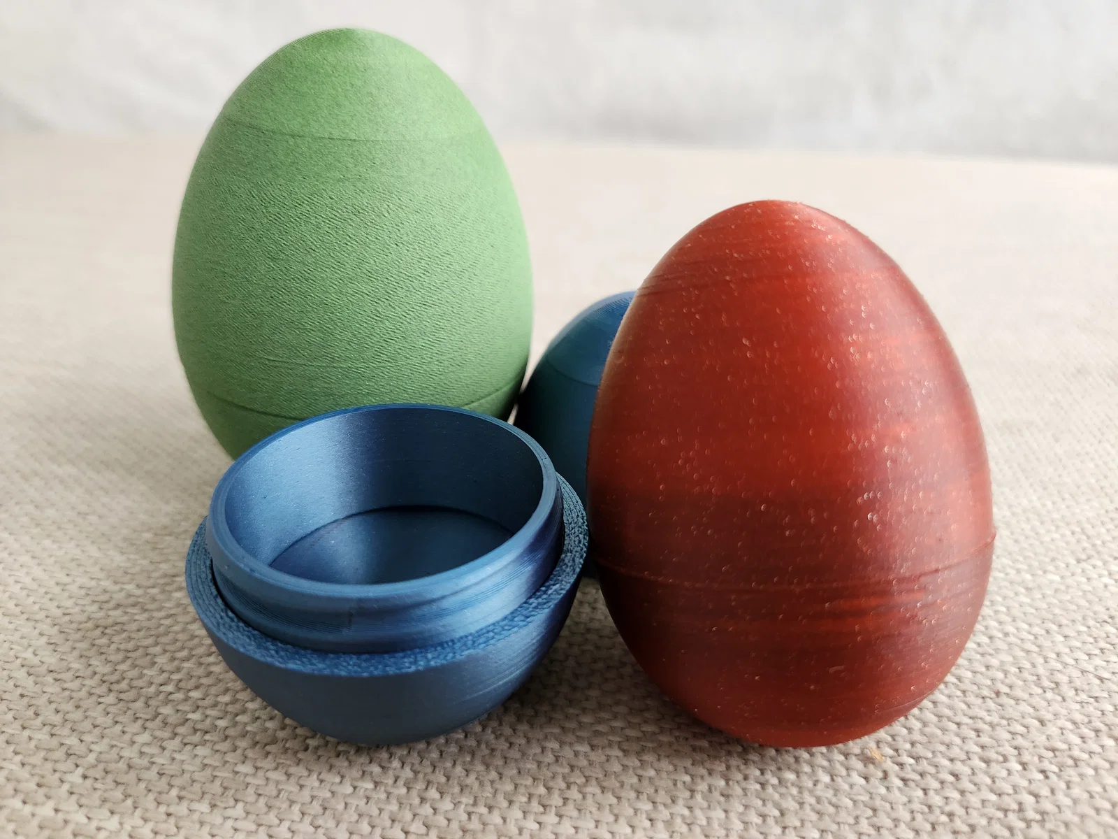 Mẫu trứng Phục sinh với thiết kế rỗng, có ren vặn để cất giấu đồ vật. Sản phẩm gồm ba kích cỡ, có thể xếp lồng vào nhau và in cực dễ dàng mà không cần dùng đến hỗ trợ (no supports).