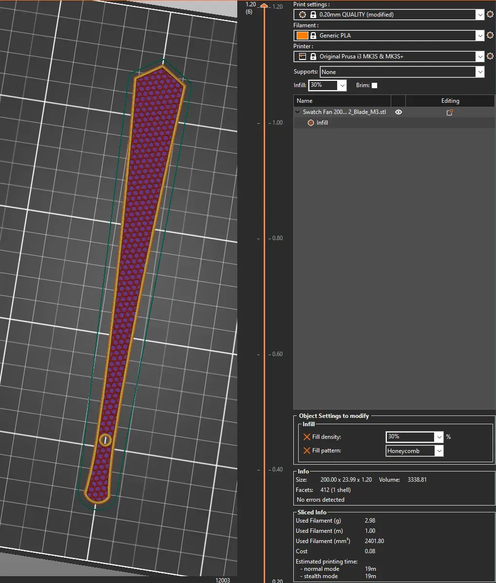- Các cài đặt duy nhất dự kiến sẽ được thay đổi ở đây là tỷ lệ lấp đầy và mẫu; đối với kích thước bình thường dài 200mm (100%) tôi sẽ giữ tỷ lệ lấp đầy khoảng 30% tùy thuộc vào mẫu.