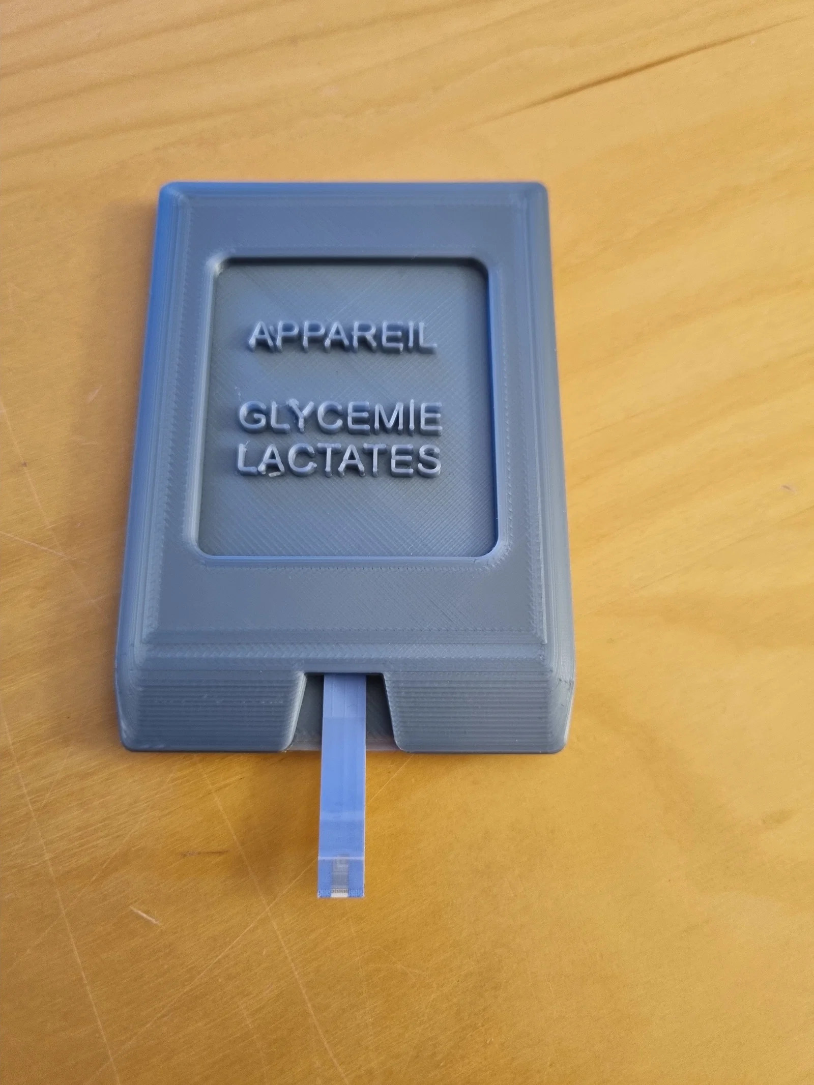 Mô hình thiết bị đo đường huyết và lactate hỗ trợ đào tạo mô phỏng y tế. Thiết kế có khe cắm chuyên dụng để giữ chắc que thử thật, giúp trải nghiệm thực hành trở nên chân thực và chuyên nghiệp hơn.