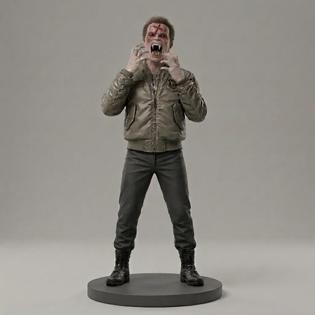 Sản phẩm này được thiết kế với độ chi tiết cao từ trang phục áo khoác bomber cho đến những nếp nhăn và răng nanh đặc trưng của ma cà rồng. Nhìn vào từng chi tiết, từ đôi tay đang co quắp như muốn vồ lấy con mồi cho đến vẻ mặt biến dị, anh em sẽ thấy được tâm huyết của người tạo mẫu khi muốn đem lại cảm giác chân thực nhất. Mô hình đứng vững trên một đế tròn trơn, cực kỳ phù hợp để trang trí trong không gian phòng ngủ hoặc phòng trưng bày cá nhân.