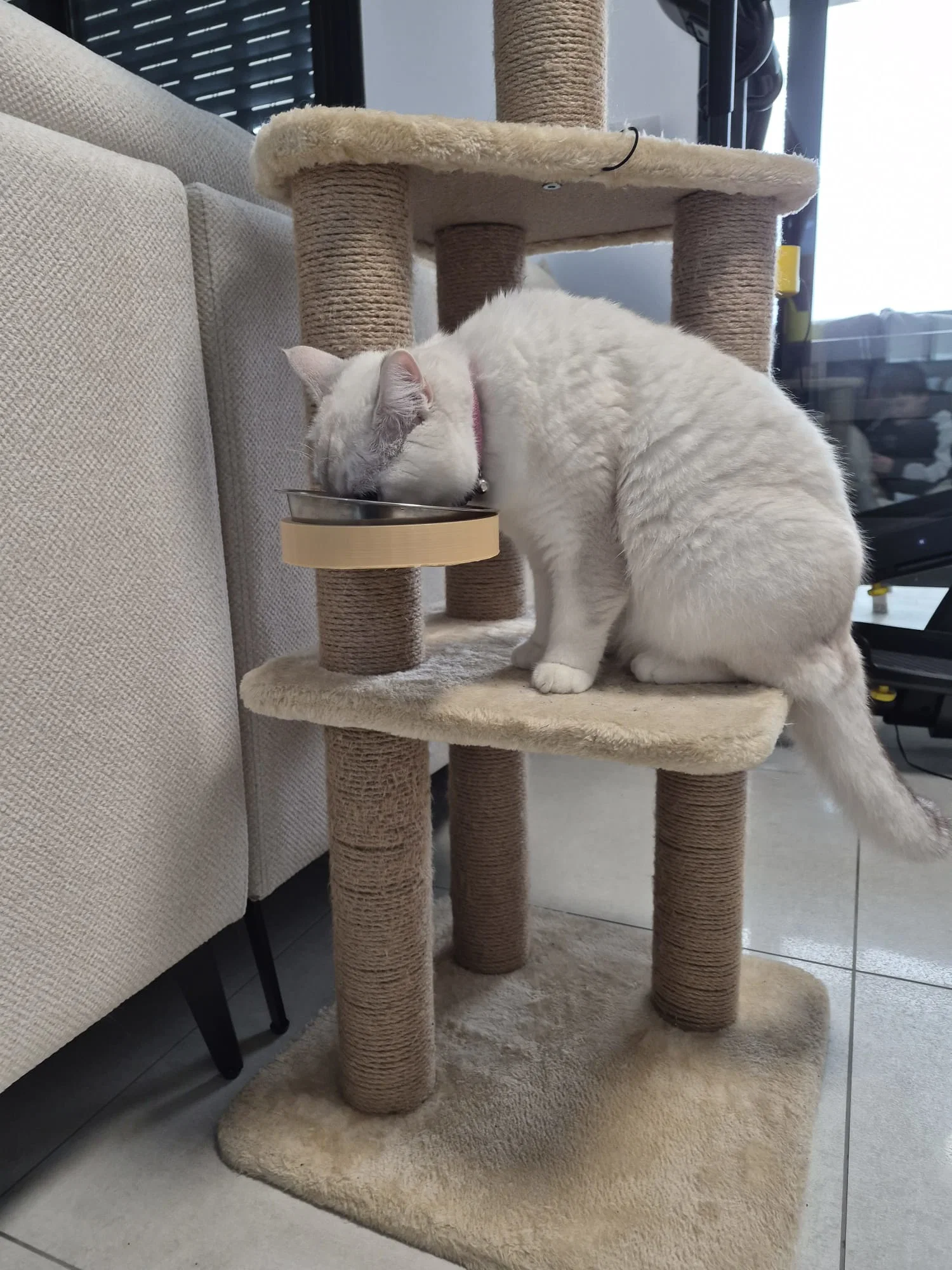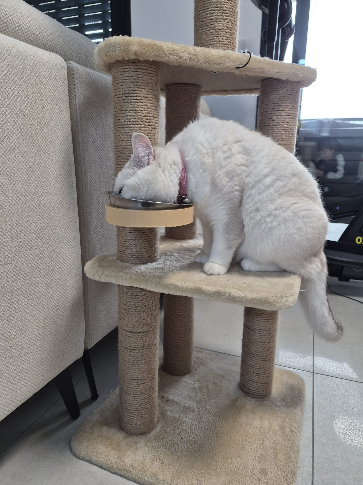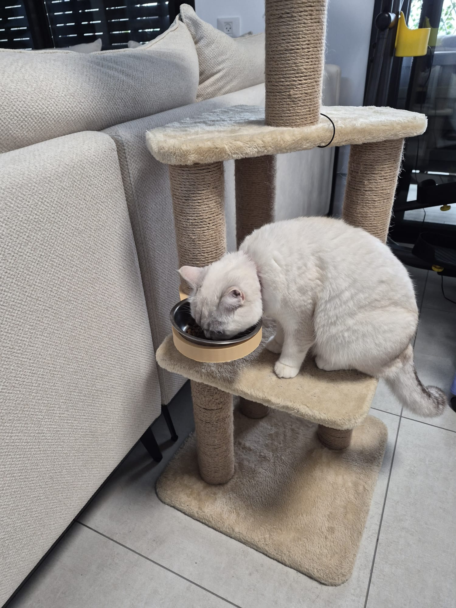 Bạn có bao giờ cảm thấy không gian sống của mèo cưng bị giới hạn bởi những chiếc bát ăn đặt dưới sàn chiếm diện tích không? Việc đặt bát ăn lên cao không chỉ giúp tiết kiệm không gian mà còn mang lại sự thoải mái cho mèo khi ăn uống, đặc biệt là những chú mèo thích sự riêng tư trên cao. Sản phẩm giá đỡ bát ăn gắn trụ cào móng (cat's bowl stand) được thiết kế đặc biệt để giải quyết vấn đề này một cách tinh tế và hiệu quả, tận dụng chính trụ cào móng quen thuộc của bé mèo.