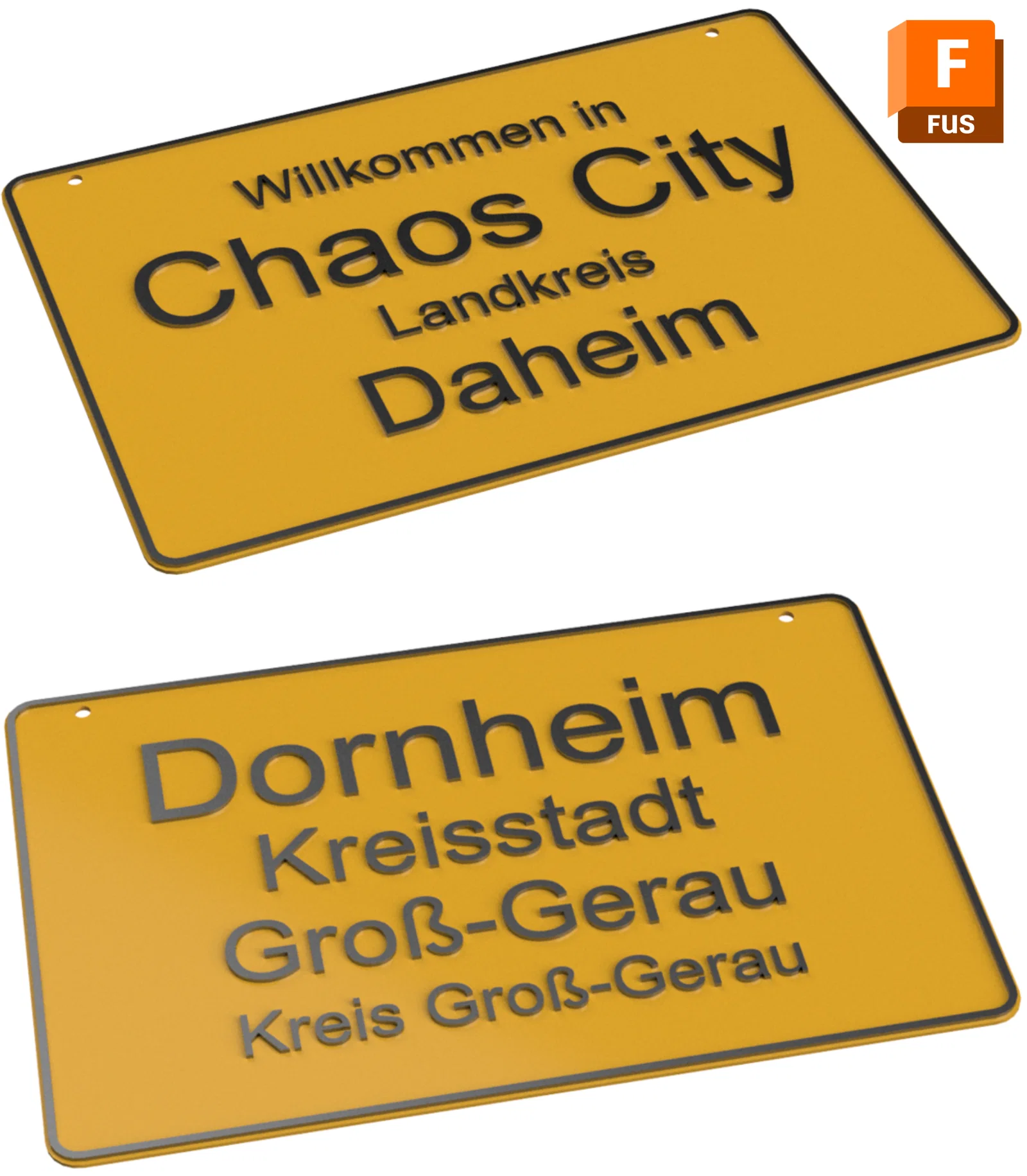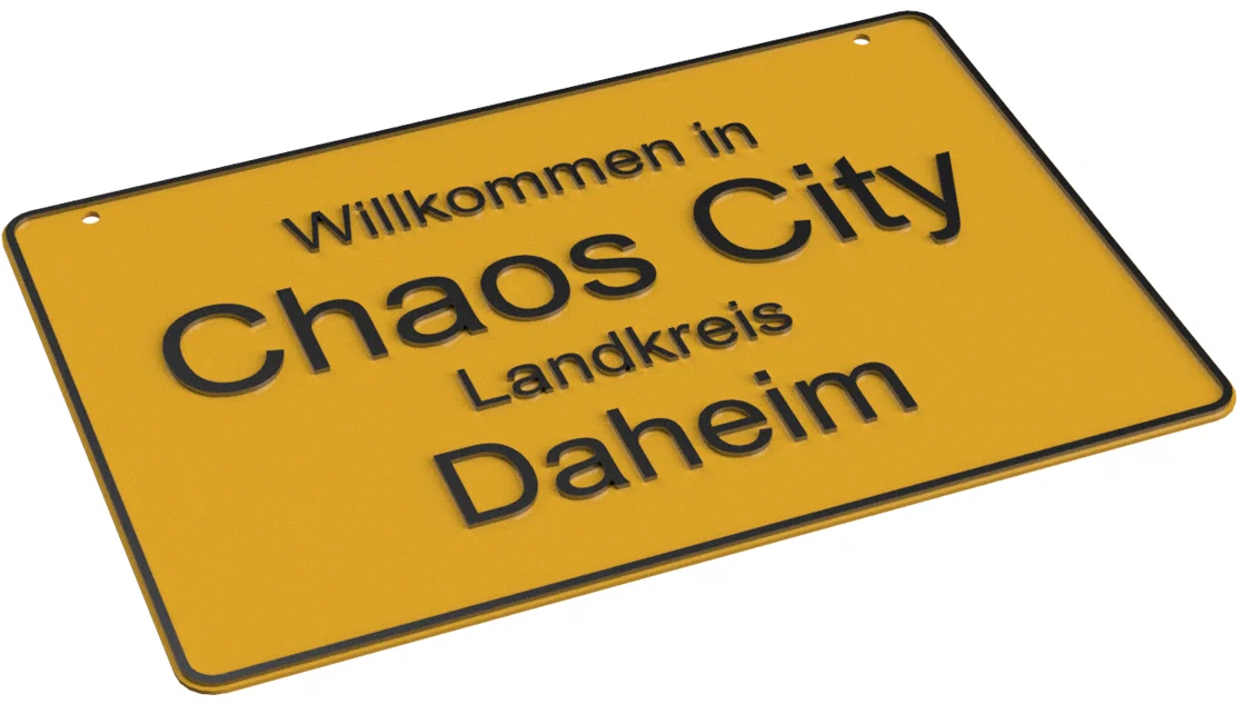 Tự thiết kế biển báo địa danh kiểu Đức với mô hình tùy chỉnh bằng tham số (Autodesk Fusion). Phù hợp làm mô hình trang trí và quà tặng độc đáo. Lưu ý: Phiên bản miễn phí chỉ bao gồm biển báo vào địa phận.