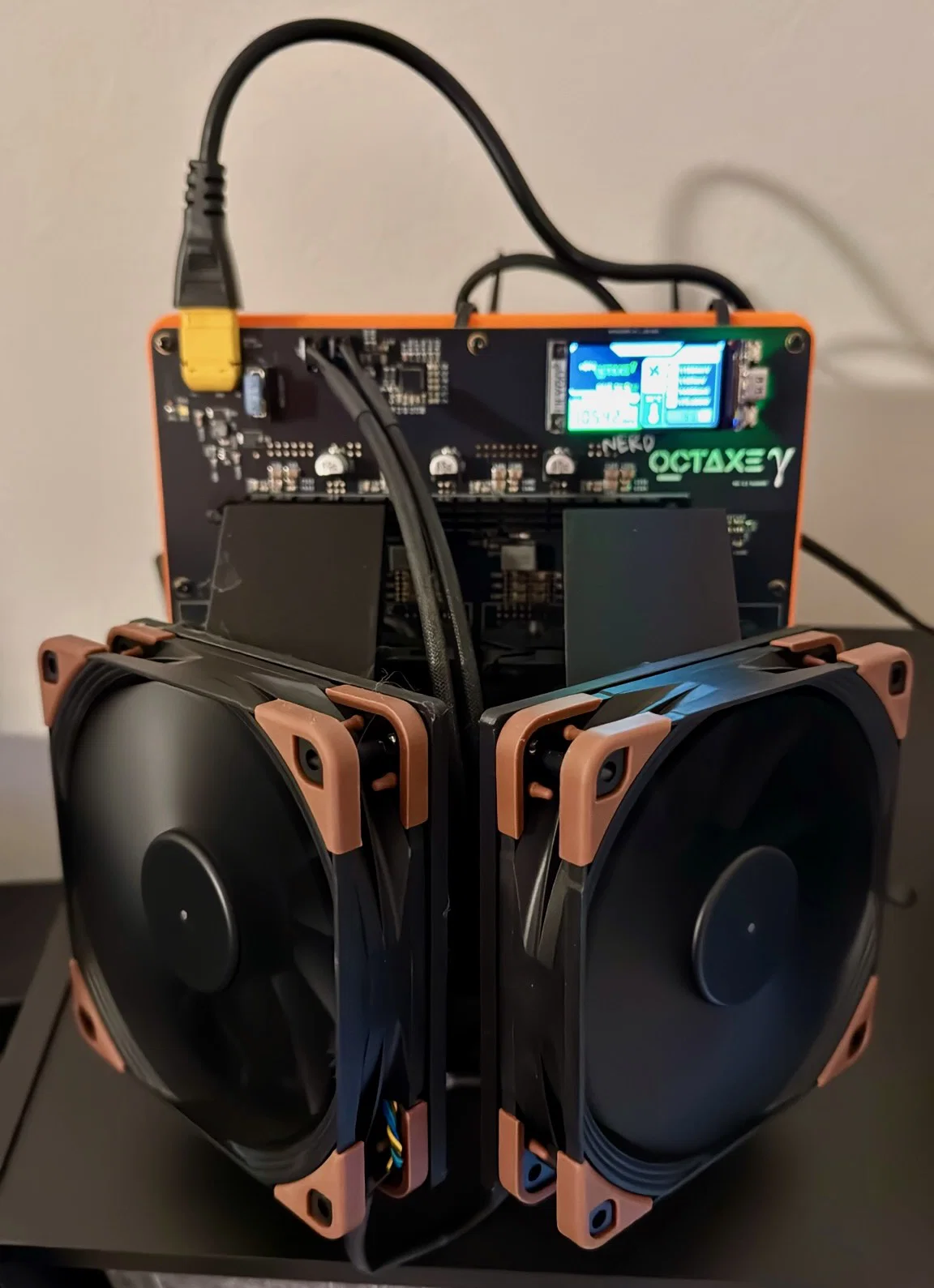 Đây là phiên bản nâng cấp của ngàm chuyển đổi quạt từ 90mm sang 120mm. Nhiều anh em đã hỏi liệu mình có thể làm thêm bản có khe gió bên hông để làm mát bộ điều chỉnh điện áp (VRM) cho máy đào Bitaxe NerdOCTaxe hay không. Máy đào này có thể ép xung (overclock) khá mạnh, nhưng quạt 90mm zin không đủ sức đẩy lượng gió cần thiết để giữ máy mát mẻ. Thêm nữa, quạt 90mm chạy rất ồn, trừ khi bạn muốn căn phòng mình nghe như phòng máy chủ vậy. Đây là ngàm chuyển đổi 90mm sang 120mm nhỏ gọn, được thiết kế nằm vừa vặn trong khuôn khổ của máy đào mà vẫn dùng được tản nhiệt gốc. Khi ép xung lên 80% công suất nguồn, máy chạy gần như im lặng với tốc độ quạt chỉ cần để ở mức 35%.