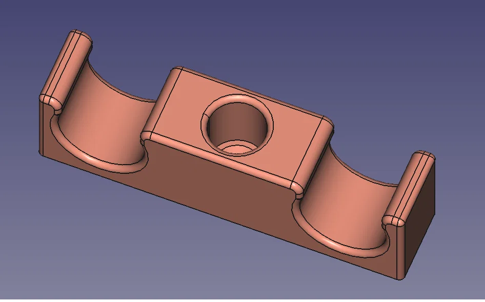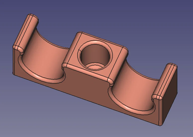 Do mình mới cải tạo lại hệ thống nước trong cabin nên mình đã thiết kế một vài cái ngàm gắn tường để cố định đường ống cho gọn gàng. Mình biết là mấy món này mua ngoài tiệm cũng có, nhưng mình tự làm để cho đúng ý và vừa vặn với nhu cầu sử dụng của mình hơn. Loại ống mình dùng là ống PEX đường kính 15mm. Một loại thì mình làm rộng hơn một chút để chừa chỗ cho các đầu nối PEX (vì mấy cái đầu nối này thường to hơn ống), loại còn lại thì bó sát hơn để giữ ống ở những đoạn không có đầu nối. Mình có đính kèm file STEP để mọi người có thể tự chỉnh sửa nếu cần thay đổi kích thước cho phù hợp với loại ống khác. Lỗ bắt vít có đường kính 4mm.