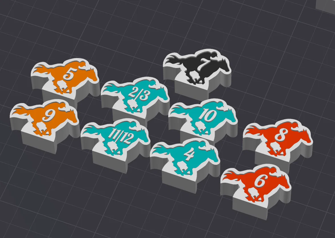 Điểm đặc biệt nhất của bản in 3D này chính là khả năng đọc số từ cả hai phía, điều mà các mảnh nhựa zin của trò chơi gốc đôi khi chưa thực hiện tốt. Thiết kế được tối ưu hóa để bạn có thể dễ dàng tùy chỉnh kích thước lớn nhỏ tùy ý cho phù hợp với sở thích cá nhân hoặc diện tích bàn chơi của mình. Việc sở hữu một bộ ngựa riêng biệt được in 3D không chỉ làm cho bàn game của bạn trông chuyên nghiệp hơn, hoành tráng hơn mà còn giúp nhịp độ trận đấu trôi chảy, không phải hỏi qua hỏi lại xem ngựa số mấy đang dẫn đầu.