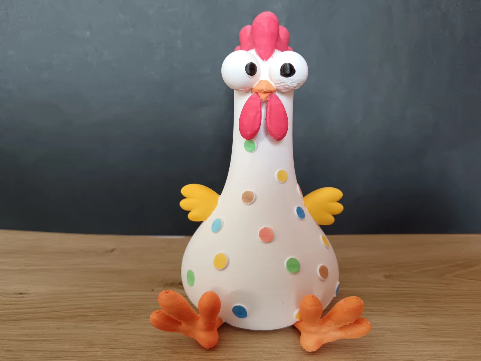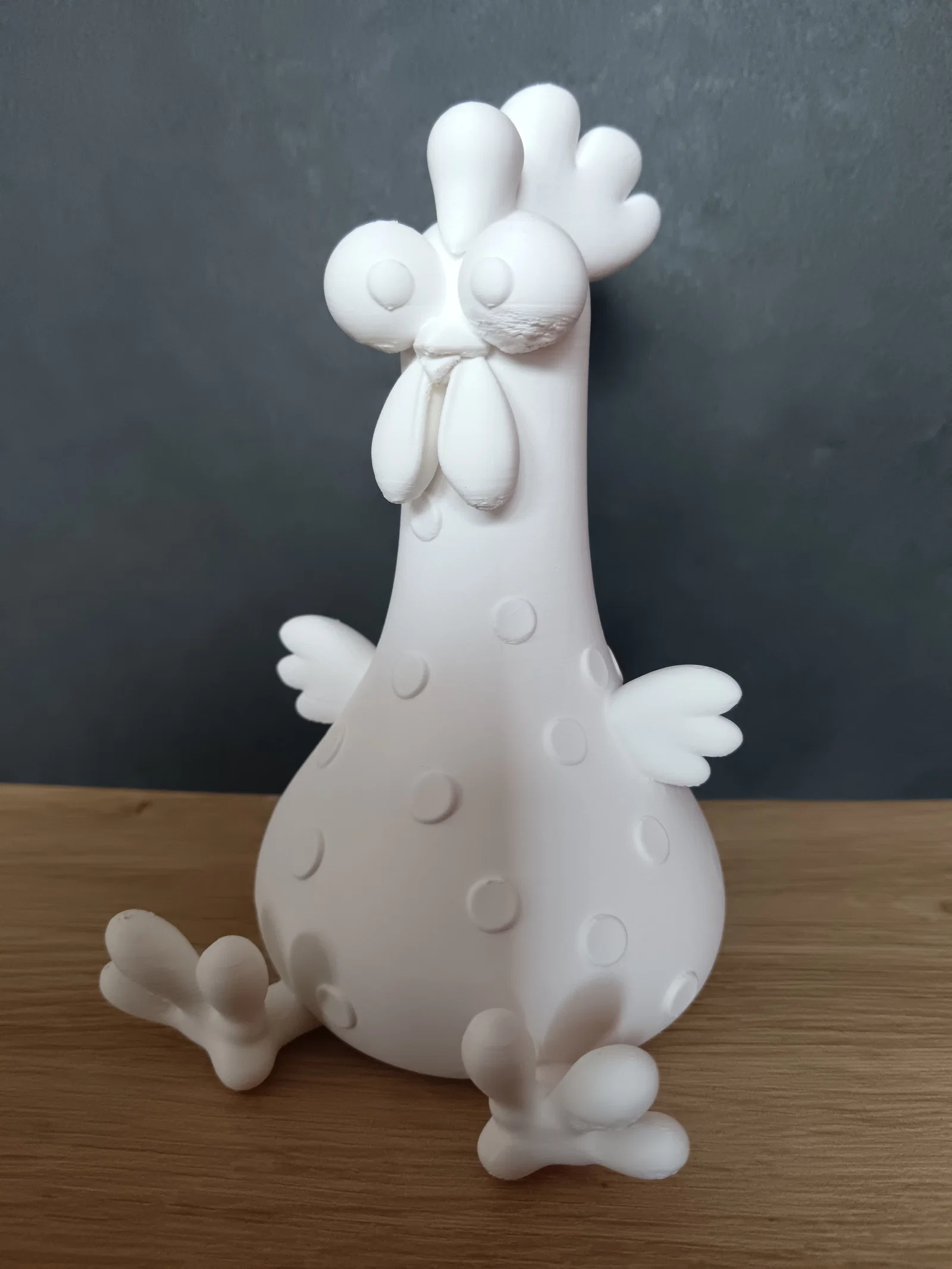 Việc sở hữu một món đồ chơi hoặc vật phẩm trang trí do chính tay mình in 3D sẽ mang lại sự thích thú đặc biệt. Mô hình chú gà này được thiết kế với các đường nét bo tròn, tạo cảm giác thân thiện và gần gũi. Bạn có thể in toàn bộ bằng nhựa PLA màu trắng rồi sau đó thỏa sức tô điểm thêm màu sắc lên các đốm tròn trên thân gà, màu đỏ cho mào và vàng cho đôi chân để chú gà trở nên sống động như thật.