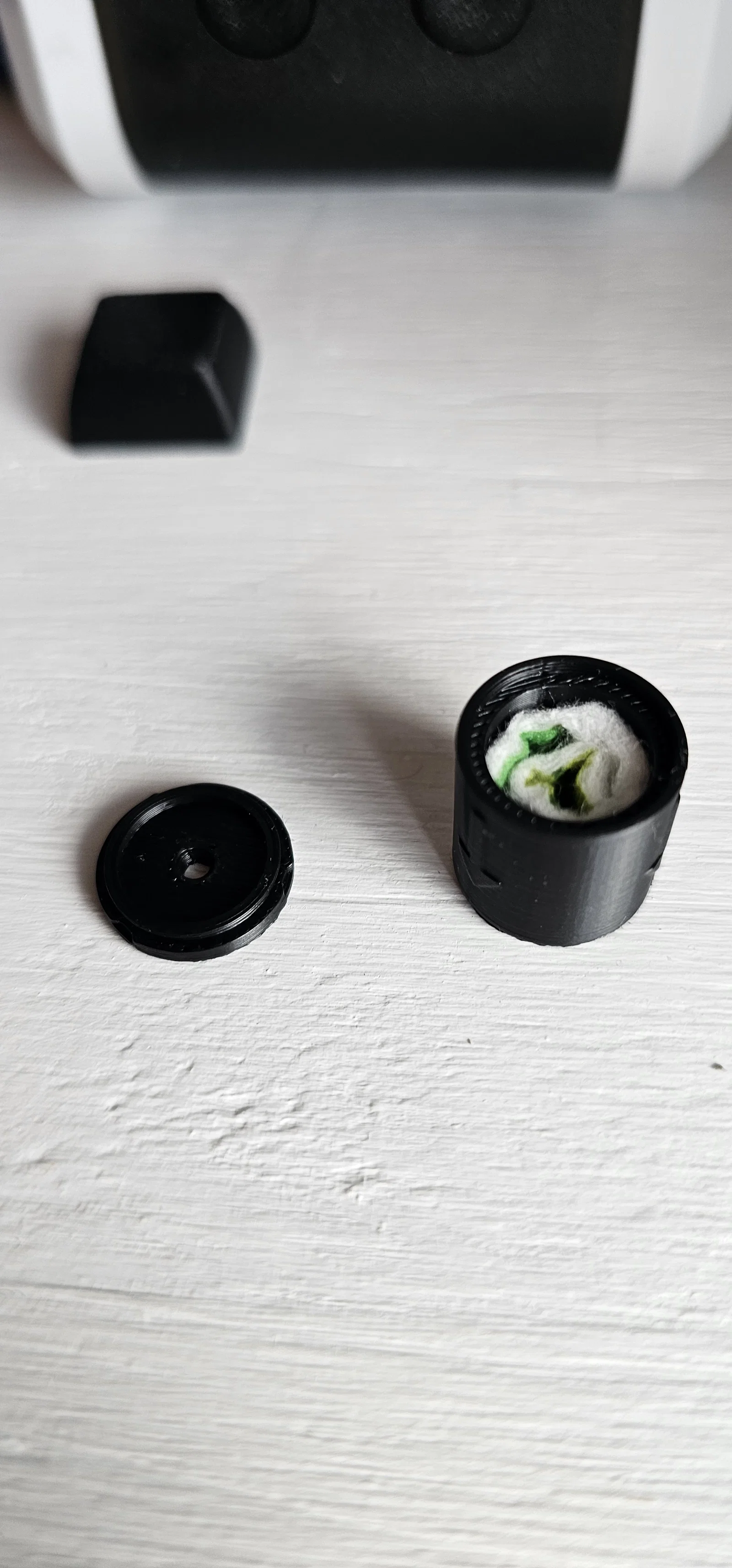 Bạn đang phiền lòng vì sợi nhựa bị bám bụi hay đầu phun hay bị tắc? Đây là mẫu bộ làm sạch sợi nhựa in 3D (filament cleaner) in cực nhanh chỉ tốn 2g nhựa, với đường kính 15mm và chiều cao 17mm, thiết kế dạng khớp nối rất tiện lợi. Bạn chỉ cần cắt miếng bọt biển hoặc vật liệu làm sạch ngắn hơn một chút để không bị cấn vào nắp đậy khi đóng khớp. Rất phù hợp để nhét bọt biển hoặc vải sợi microfiber vào bên trong. Sản phẩm in với độ dày lớp 0.2mm, không cần support. Chúc các bạn in vui vẻ!