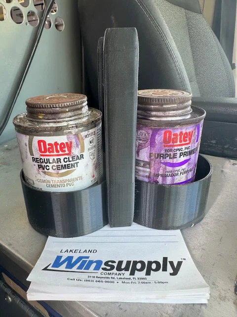 Nếu bác nào làm nghề điện nước hay thường xuyên phải thi công đường ống PVC, chắc hẳn sẽ hiểu cảm giác cực kỳ khó chịu khi phải loay hoay tìm chỗ đặt hũ keo dán ống và lọ dung môi làm sạch (primer). Cứ đặt đại trên nền đất hay bề mặt gồ ghề thì rất dễ bị đổ, làm dây bẩn khắp nơi hoặc tệ hơn là rơi vãi hóa chất. Với mô hình khay đựng keo (glue holder) được thiết kế chuyên biệt cho kích thước hũ 1/2 pint này, anh em sẽ giải quyết được vấn đề gọn gàng ngay lập tức.