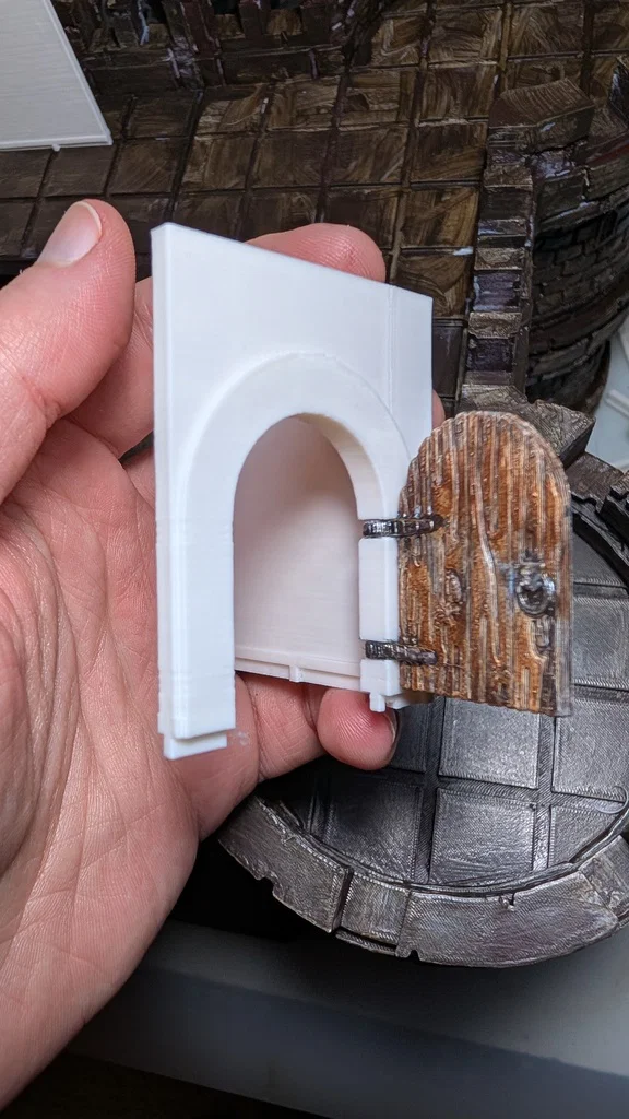 Các bức tường này được thiết kế để khớp vào hệ thống lưới sàn có rãnh 3mm, nhưng chúng vẫn có thể vừa với những loại rãnh nhỏ hơn. Kích thước được tối ưu cho địa hình D&D 25mm tiêu chuẩn. Phần cửa cho phép các sinh vật cỡ trung (medium - 25mm) có chiều cao lên đến 40mm ở giữa có thể đi qua dễ dàng. Dù là chi tiết nhỏ thôi nhưng mình rất thích đặt các mô hình sinh vật ngay tại cửa.