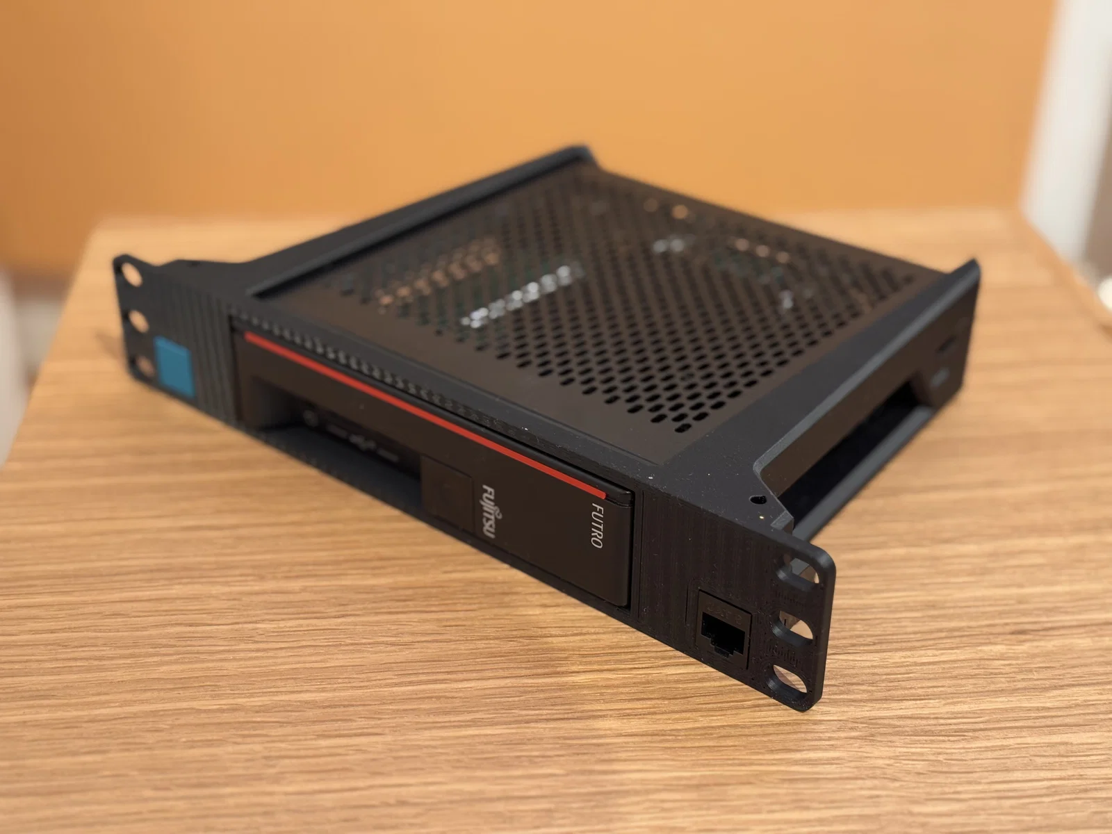 Ngàm gắn rack 10 inch được tùy chỉnh dành riêng cho các dòng máy mini PC và thin client của Fujitsu. Thiết kế đi kèm lỗ thông hơi để tản nhiệt, đảm bảo độ chắc chắn khi in với infill thấp và tương thích hoàn hảo với các hệ thống rack 10 inch.