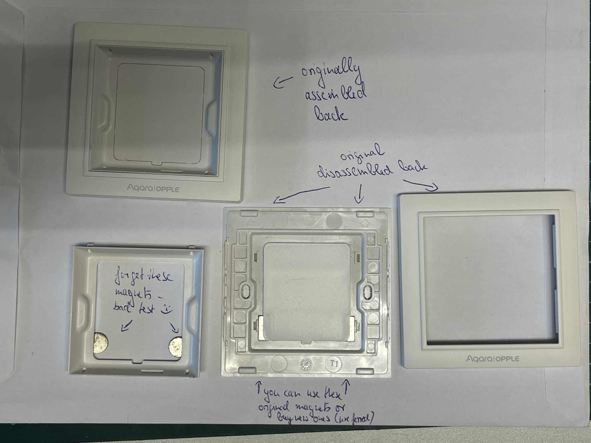Mô tả Tôi đã tìm kiếm một khả năng đơn giản để thêm công tắc Aquara Opple vào chương trình công tắc Merten M-Smart ở đây trong nhà. Thật không may, tôi không thể tìm thấy. Tôi không có ý tưởng về cách thiết kế nên tôi chỉ nghĩ rằng tôi sẽ thử kết hợp các thứ trong Tinkercad và thật bất ngờ là nó đã hoạt động. :) Vì vậy, tôi đã lấy mô hình từ jarrah và cắt bỏ mọi thứ ngoại trừ lõi bên trong và cấy nó vào bên trong mô hình từ kampfschlaefer. Tôi đã tạo ra hai phiên bản - một phiên bản mà Aquara Opple nằm trên công tắc Merten và một phiên bản mà nó nằm dưới công tắc. Ngoài việc in mô hình, bạn cần hai nam châm có kích thước 12 x 6 x 3mm. Những cái này có thể được mua hoặc lấy từ giá treo tường gốc của Aquara Opple. Tôi khuyên bạn nên chọn tùy chọn đầu tiên, vì bạn sẽ có thể sử dụng giá treo tường gốc bất cứ lúc nào nếu cần. Đây là một nguồn có thể cho nam châm neodymium 12 x 6 x 3mm: https://s.click.aliexpress.com/e/_DeL6ApF Cập nhật (2023-09-24):