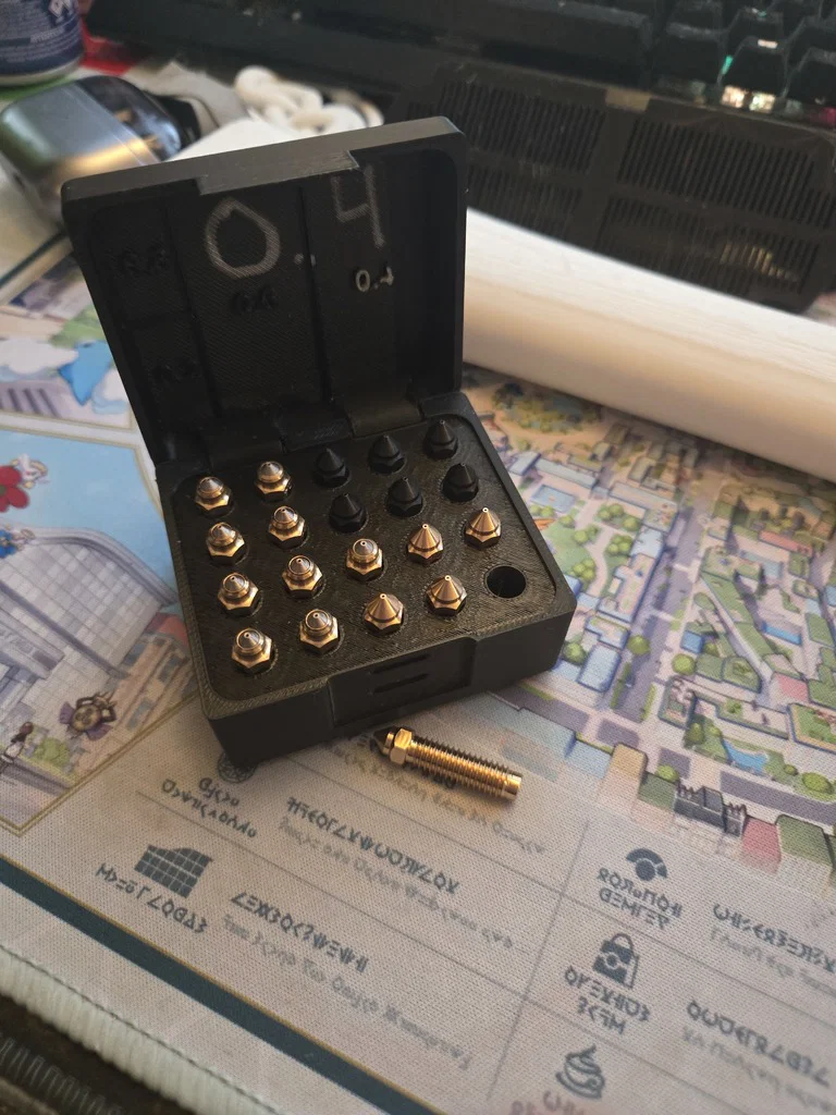 Bạn đang tìm cách quản lý các vòi phun (nozzle) cho máy in Elegoo Centauri Carbon một cách khoa học? Đừng bỏ qua mẫu hộp đựng nozzle được thiết kế riêng biệt này. Sản phẩm không chỉ giúp bạn sắp xếp các linh kiện nhỏ gọn, ngăn nắp mà còn bảo vệ chúng khỏi bụi bẩn và hư hại trong quá trình lưu trữ. Với thiết kế tối ưu, có nắp đậy chắc chắn và khả năng cố định vòi phun vững chãi, đây là phụ kiện không thể thiếu cho bất kỳ ai yêu thích sự gọn gàng tại không gian làm việc. Mẫu in này dễ thực hiện, tiết kiệm nhựa và mang lại giá trị sử dụng lâu dài cho mọi anh em dùng máy Elegoo.