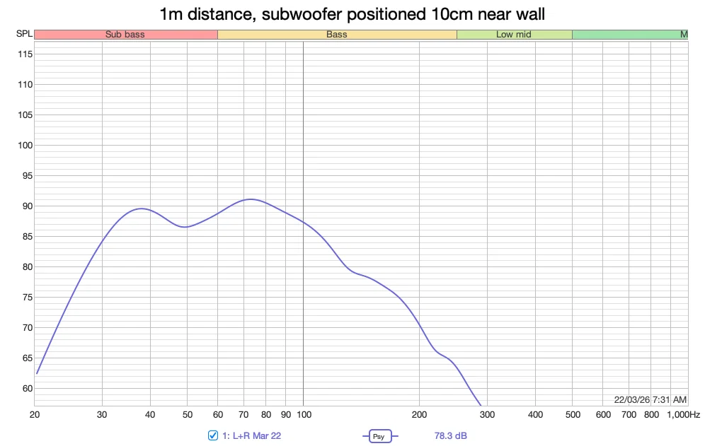 Anh em cần dùng thêm loa vệ tinh có dải tần xuống được ít nhất 100 Hz để kết hợp. Tôi đã thử ghép nó với loa toàn dải 4 inch (xem ảnh thứ 4), kết quả rất ấn tượng với âm trường rộng và độ chi tiết cao, dù phải giảm âm lượng của sub đáng kể để cân bằng với độ nhạy thấp của loa toàn dải.