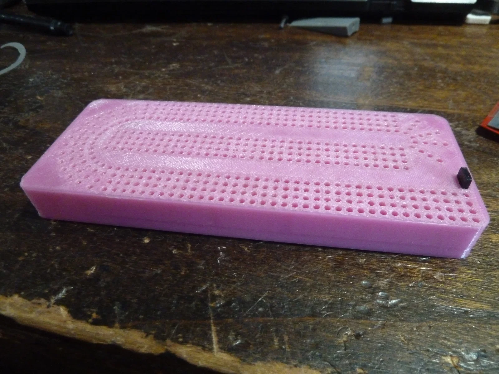 Mẫu bảng chơi bài Cribbage nhỏ gọn với chiều dài 15cm. Thiết kế này hỗ trợ in các chốt nằm ngang để đảm bảo độ cứng cáp, phù hợp cho những ai yêu thích các trò chơi board game cổ điển.