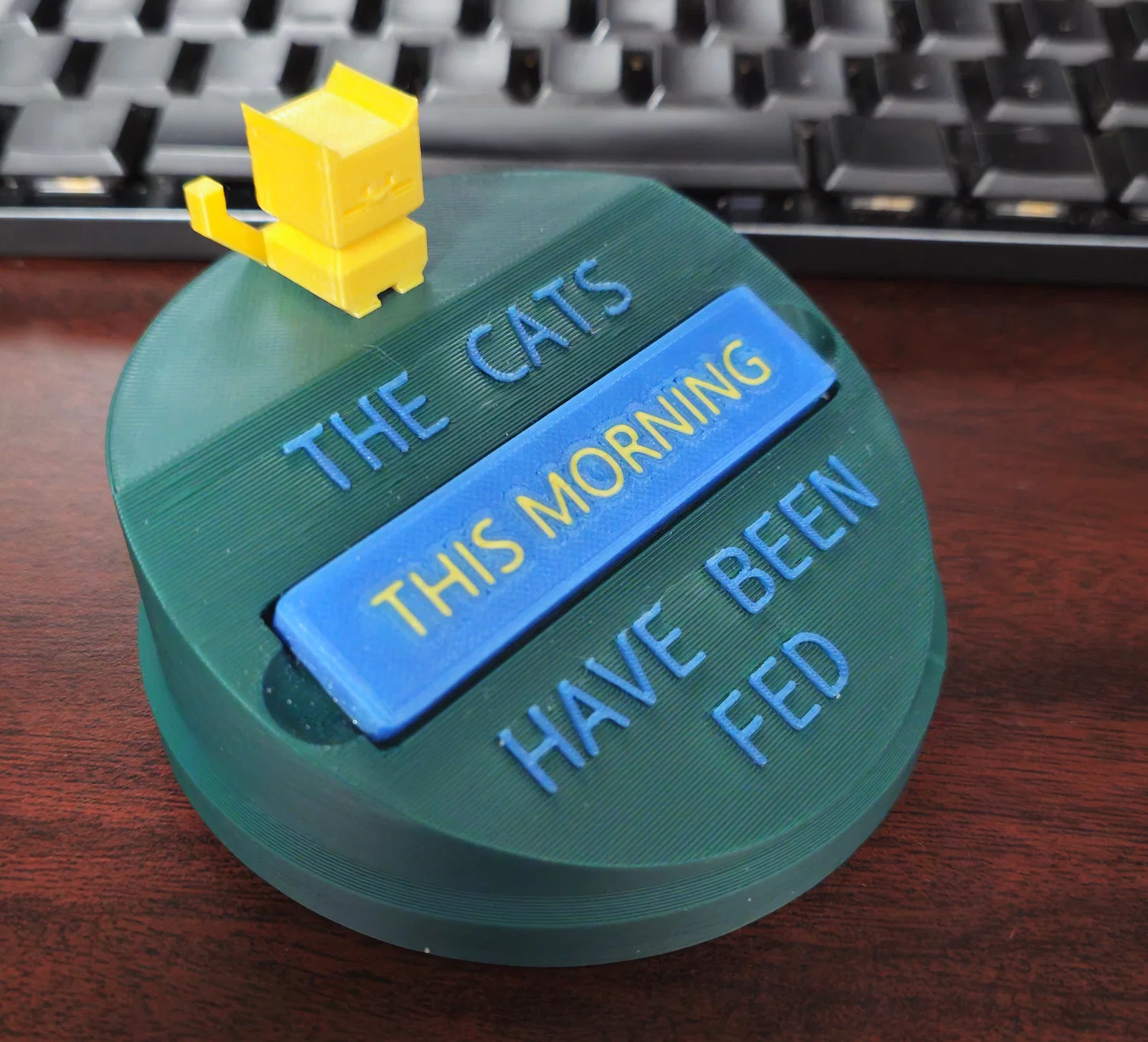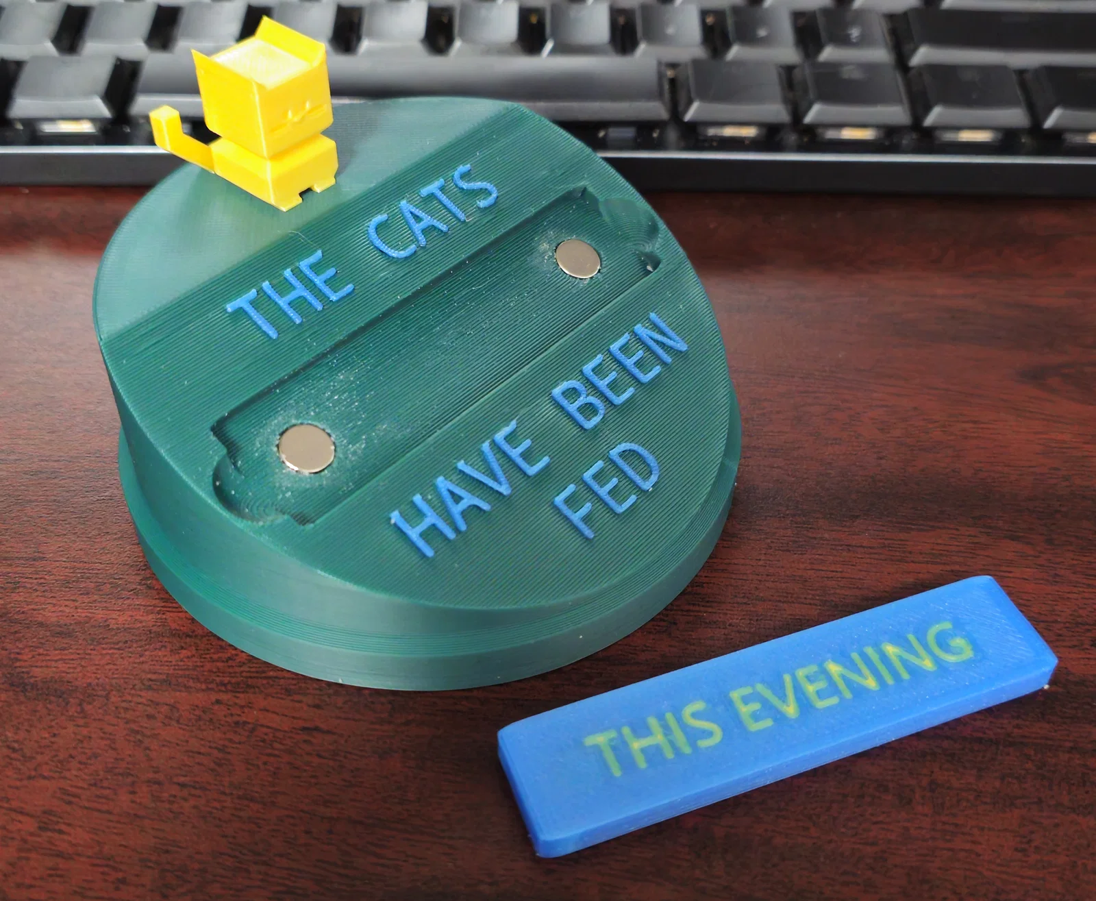 Sử dụng nam châm 8mmx3mm nhúng vào bên trong cho phần chỉ báo trung tâm, phần đế và cả đáy của bảng hiển thị (cực kỳ tiện để dán lên nắp hũ đựng hạt cho mèo). Giả sử là vậy.