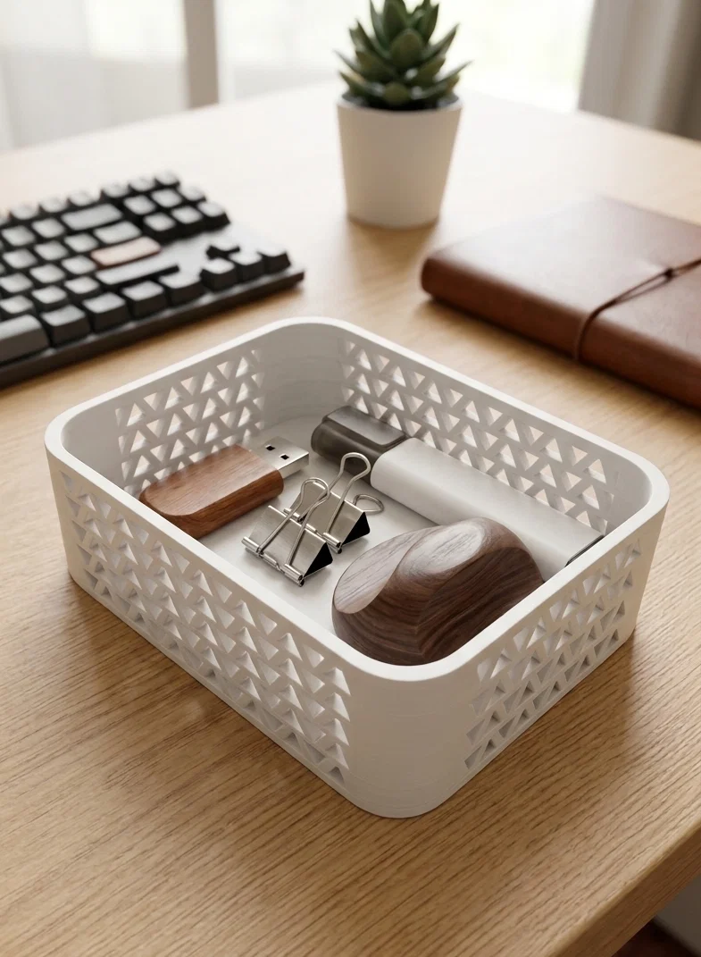 Chiếc hộp đa năng này sở hữu thiết kế hiện đại với họa tiết hình học tinh tế. Phù hợp để đựng vật dụng cá nhân, văn phòng phẩm hoặc linh kiện điện tử nhờ cấu trúc thông thoáng, in được mà không cần support.