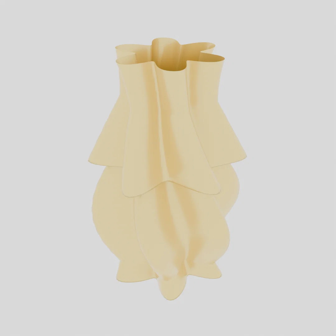 Một chiếc bình hoa nghệ thuật với thân xoắn và các cánh hoa xếp lớp độc đáo. Thiết kế mang lại cảm giác tự nhiên đầy lôi cuốn. Tải về miễn phí. Lưu ý: Cần sử dụng hỗ trợ (supports) khi in.