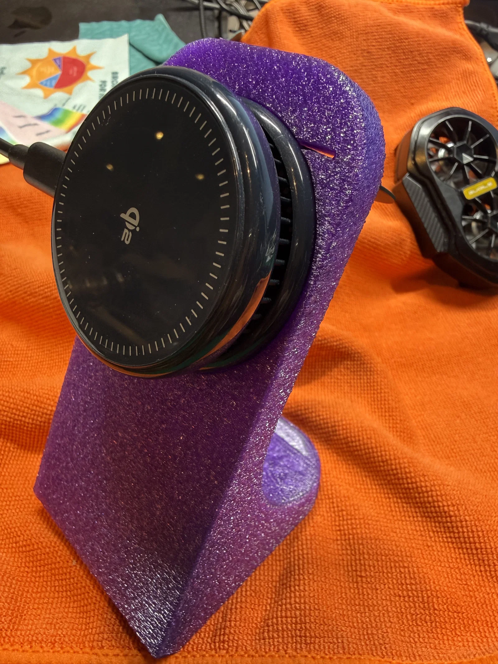 Bộ sạc TORRAS được thiết kế với vòng nhẫn phía sau, cho phép bạn đặt trên bàn và tùy chỉnh góc nghiêng. Tuy nhiên, trên chiếc bàn làm việc lộn xộn của mình, tôi thường xuyên phải tìm kiếm bộ sạc này, nên đã quyết định thiết kế một chiếc đế giữ tương tự như các loại đế dành cho MagSafe.