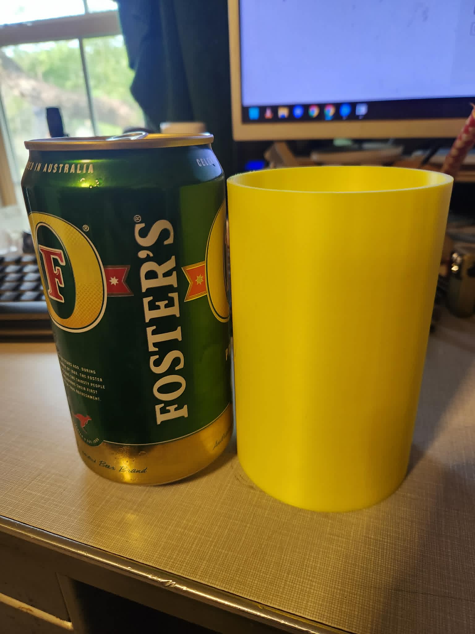 Lon bia Foster's có kích thước rất lớn, khó tìm được bao giữ nhiệt phù hợp. Mẫu này cung cấp phần đế vừa vặn, có thể dùng ngay hoặc remix. Lưu ý nên chọn bản có lỗ thoát khí vì dung sai thiết kế rất khít.
