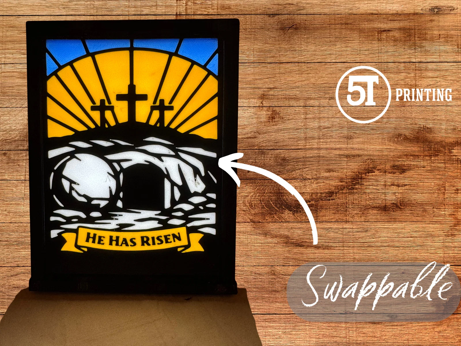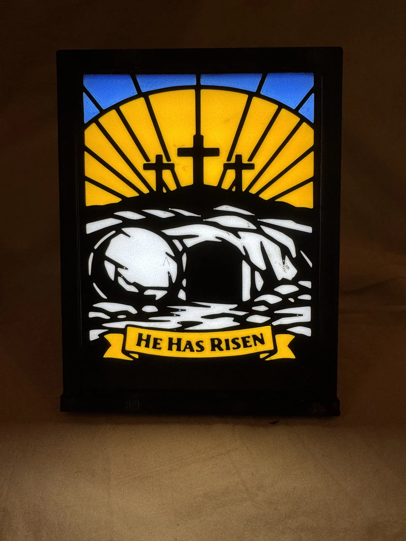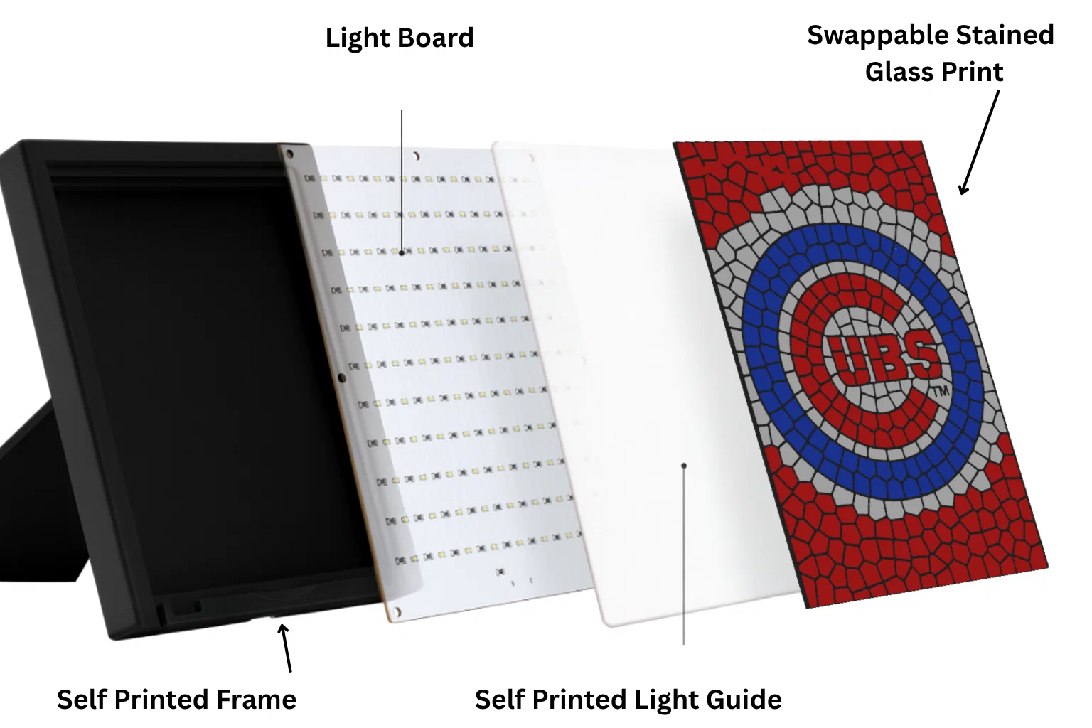 Một sự kết hợp tuyệt vời giữa hộp đèn và lithophane theo phong cách kính màu stained glass. Thiết kế mô-đun nhỏ gọn, tiết kiệm nhựa, dễ dàng thay đổi nội dung trang trí cho các dịp lễ hoặc mùa giải thể thao yêu thích của bạn.