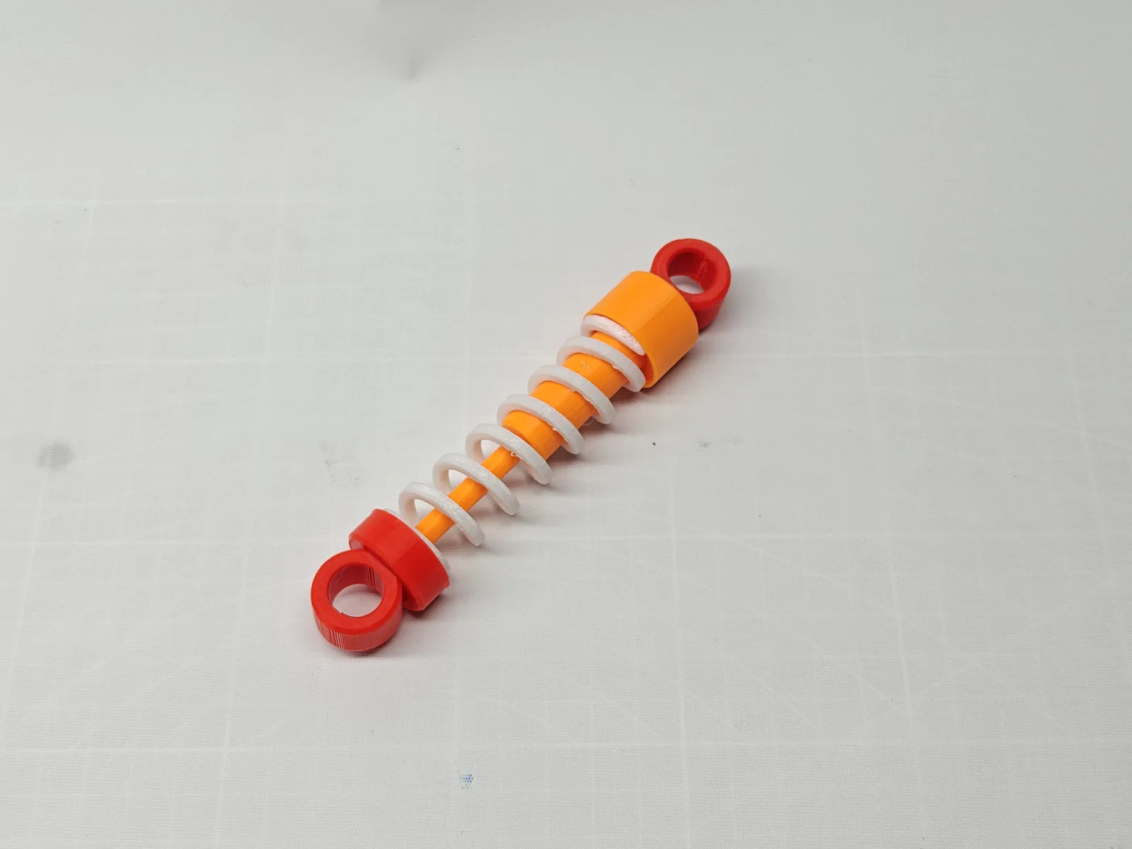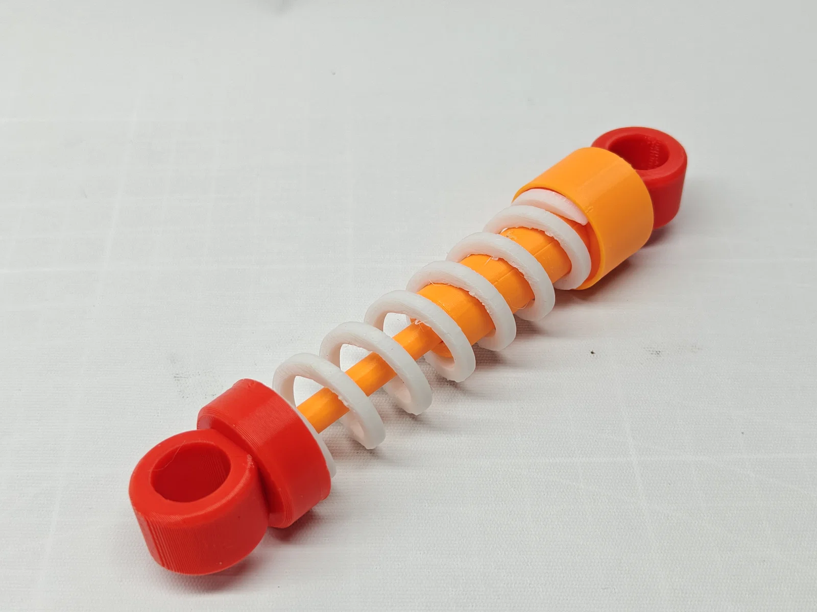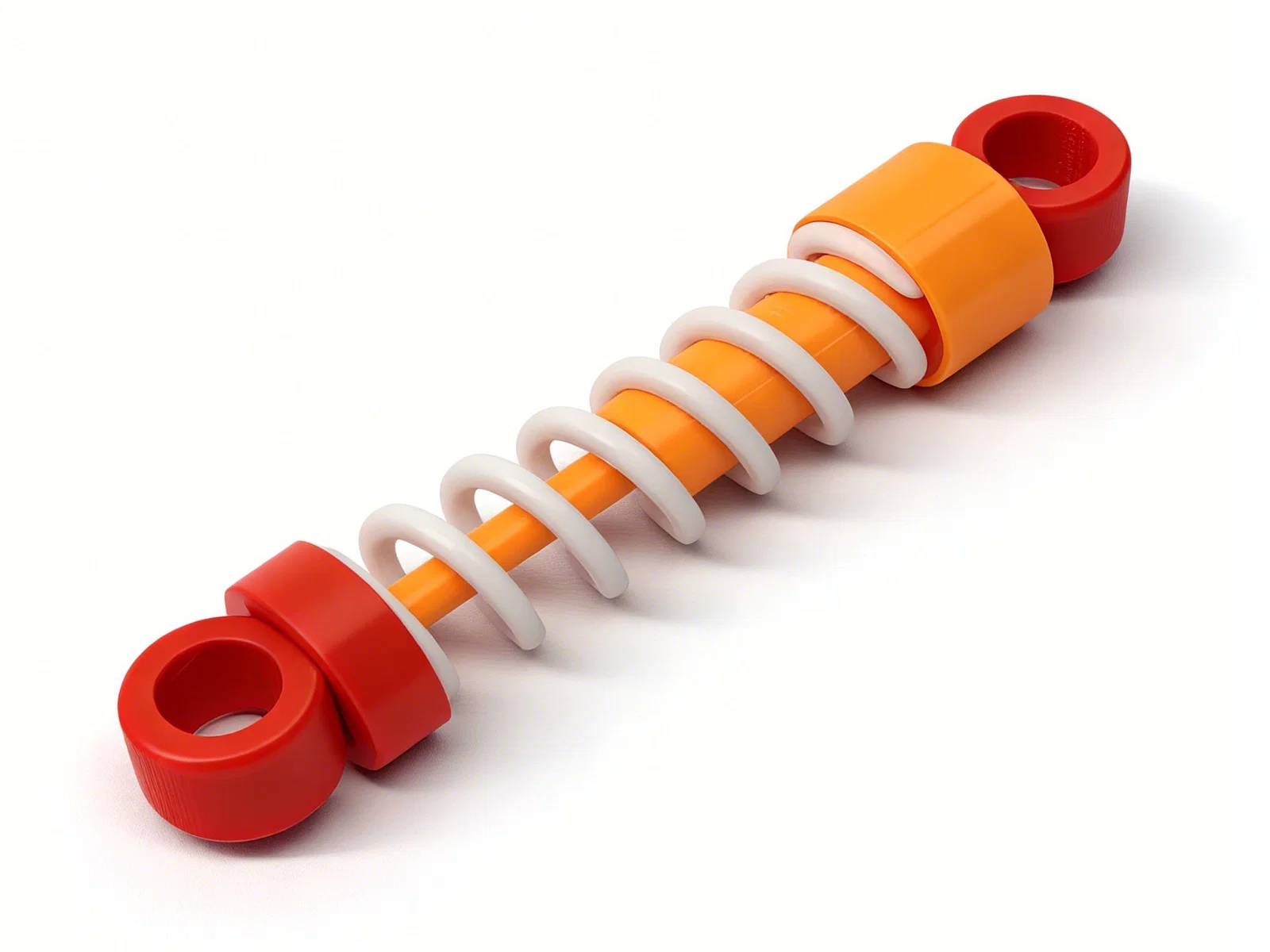 Mô hình này được lấy cảm hứng từ bộ giảm xóc xe thực tế. Sản phẩm nổi bật với tông màu đỏ và cam rực rỡ kết hợp cùng lò xo trắng, tạo vẻ ngoài bắt mắt và sinh động, rất thích hợp để làm đồ chơi cho trẻ em hoặc mô hình học tập.