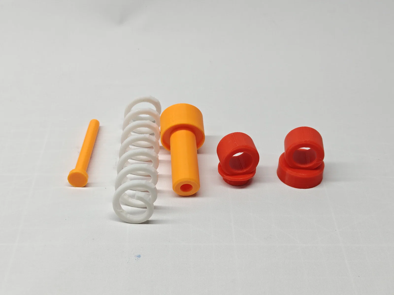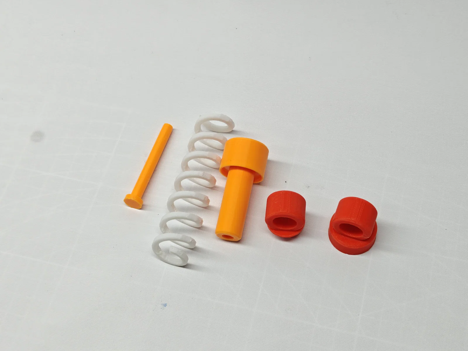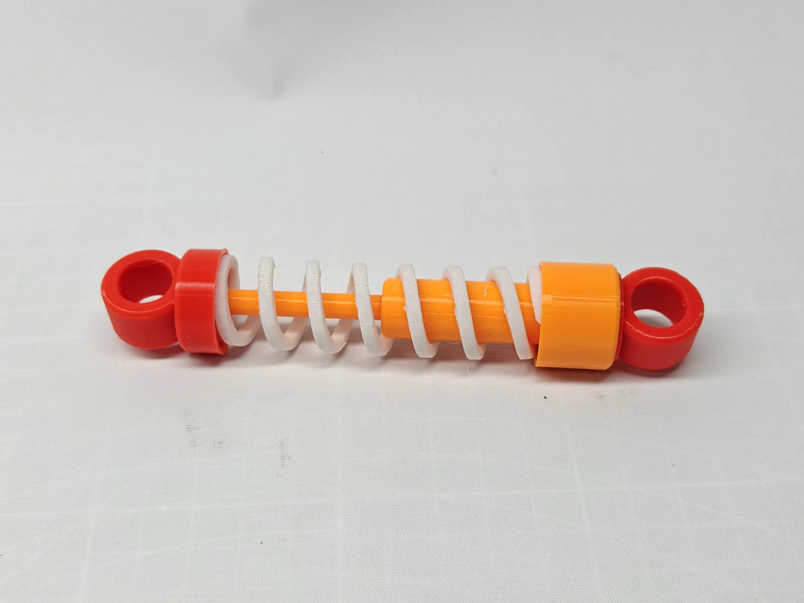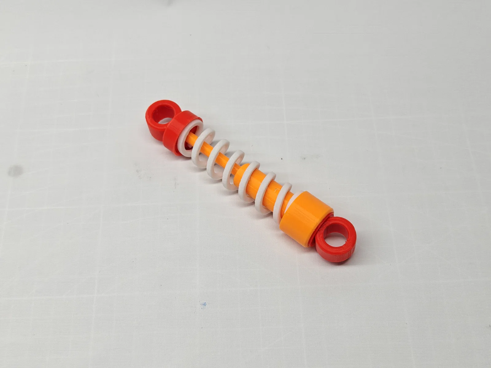 Mô hình này được lấy cảm hứng từ bộ giảm xóc xe thực tế. Sản phẩm nổi bật với tông màu đỏ và cam rực rỡ kết hợp cùng lò xo trắng, tạo vẻ ngoài bắt mắt và sinh động, rất thích hợp để làm đồ chơi cho trẻ em hoặc mô hình học tập.