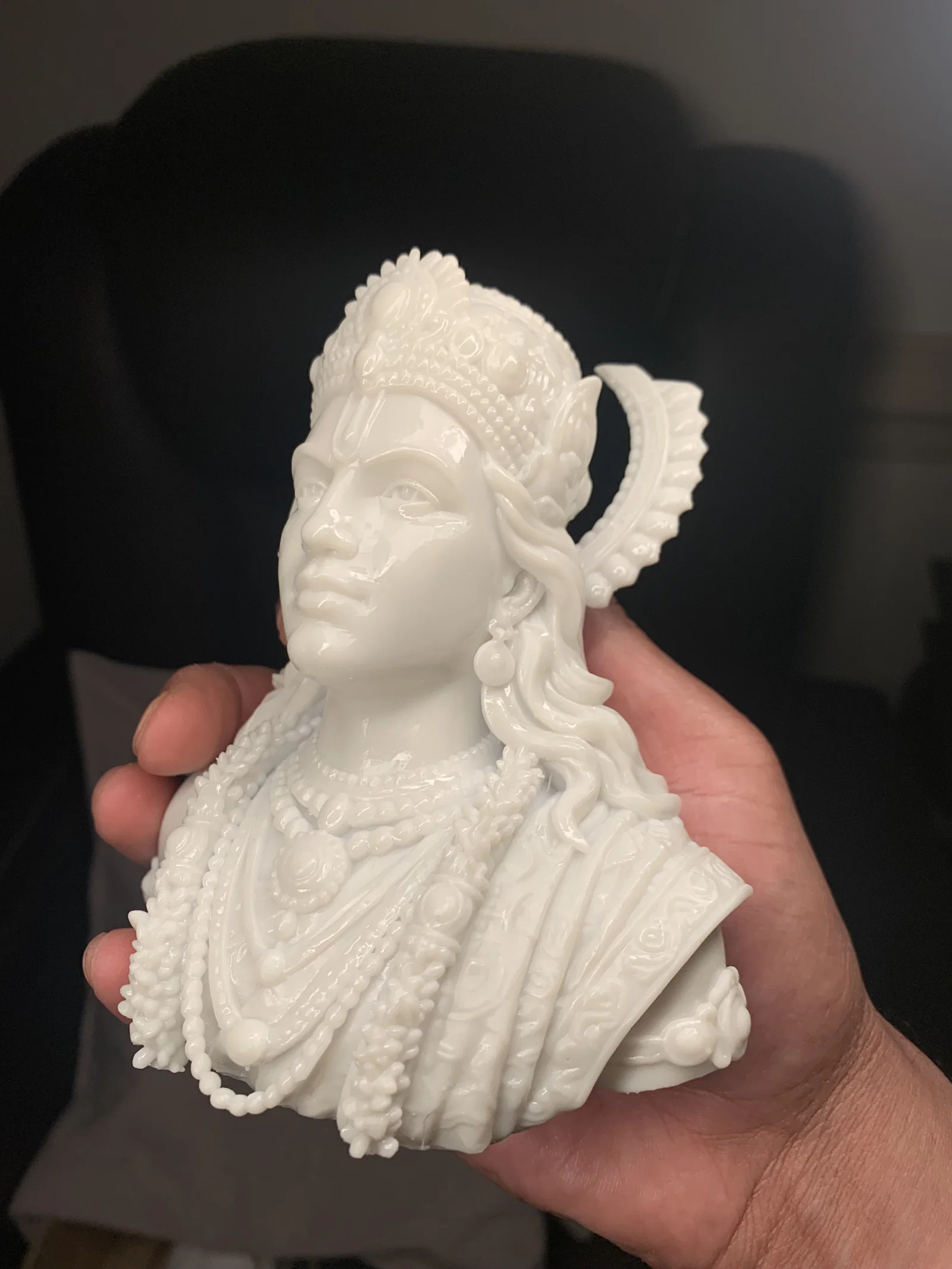 Đây là mẫu tượng bán thân của Đức Ram, một vị thần trong tín ngưỡng và thần thoại Vệ Đà/Ấn Độ giáo cổ đại. Ảnh gốc có phần vương miện hào quang đầy đủ, nhưng trong các file mẫu này, mình đã thiết kế hào quang dạng bán nguyệt vì thấy nó ấn tượng hơn và giúp in được tượng to hơn trên bàn in giới hạn của máy. Mình in bằng máy resin Mars 5 Ultra của Elegoo, nhưng các máy in sợi nhựa (filament) vẫn sẽ in tốt nếu thiết lập support phù hợp. Mình in với 20% infill, độ dày vỏ 2mm và có 2 lỗ thoát 3.5mm ở phía sau (nếu file bạn chọn chưa có sẵn, bạn cần tự tạo lỗ). Một trong các mẫu đã có sẵn đế tích hợp. Jai Shree Ram! Chúc mọi người in vui vẻ...