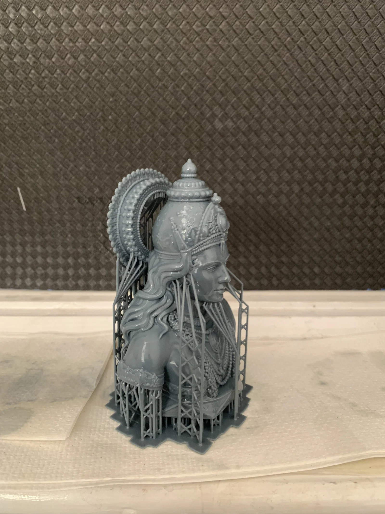 Lưu ý: Mình thiết kế phần đế để tượng hơi ngả về sau khi đặt trên mặt phẳng. Không cần thêm support hay giá đỡ gì cả, lý do là vì nhiều người theo đạo Hindu có bàn thờ tại gia, việc đặt nghiêng như vậy giúp bức tượng trông giống như đang nhìn lên họ khi đang cầu nguyện. Ngoài ra, nếu dùng làm vật trang trí bàn làm việc, khi ngồi ở khoảng cách thông thường, bức tượng sẽ trông như đang nhìn thẳng vào bạn, mang lại một cảm giác rất khác biệt.