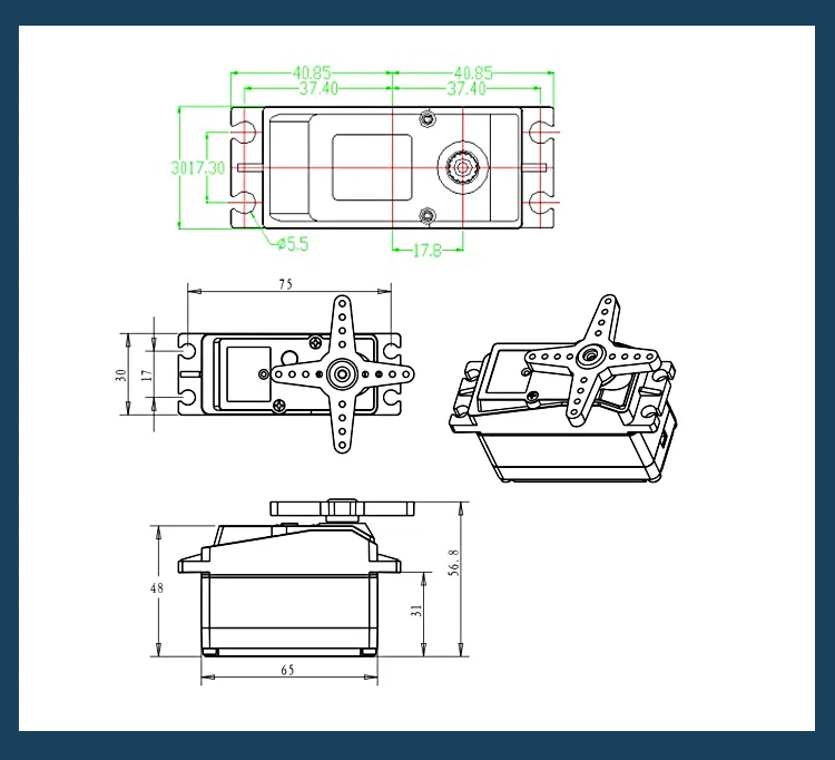 Đây là một mô hình 3D nhanh của dòng DS5160ssg 60Kg Digital Servo.