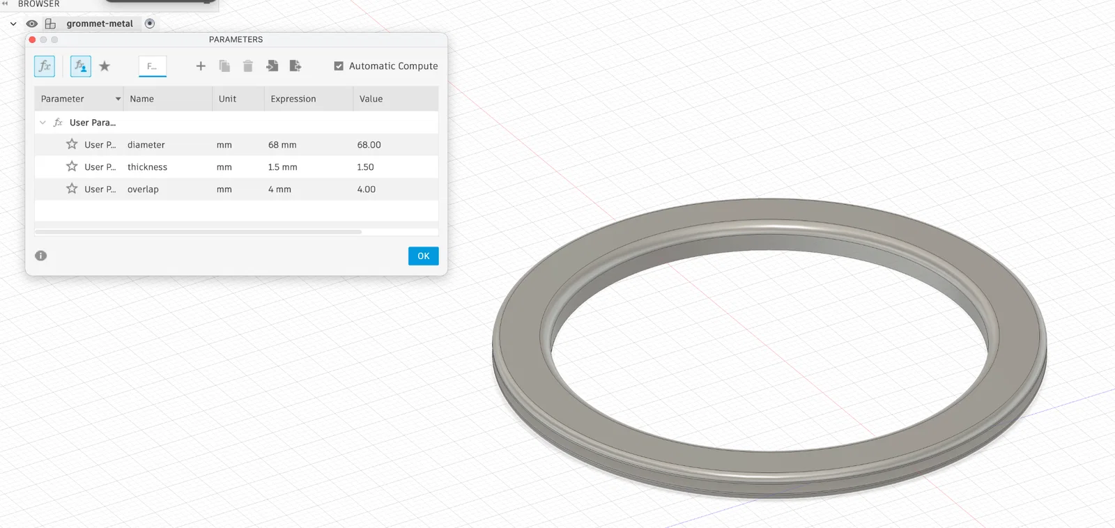 Phiên bản thiết kế tham số (parametric) hoàn toàn cho nút bịt cáp USM Haller lỗ 68 mm. Bạn có thể dễ dàng tùy chỉnh đường kính, độ dày và độ chồng lấp để phù hợp với mọi nhu cầu sử dụng.