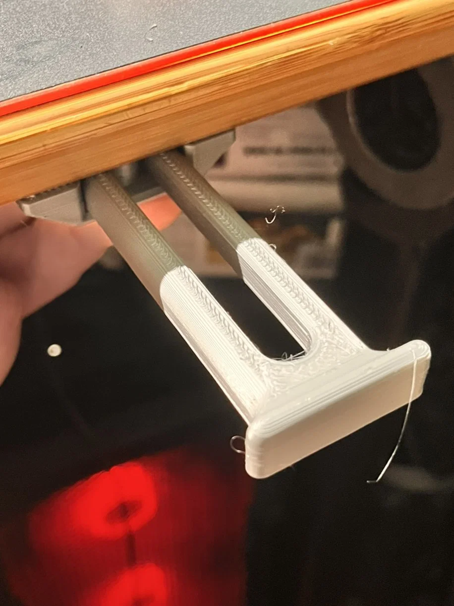 Vì mình đang dùng bàn IKEA không có cạnh bàn thẳng, nên mình cần cái giá treo dài hơn một chút để tai nghe có thể vừa vặn. Phần còn lại (phần bắt vít vào bàn) vẫn y hệt như bản gốc.