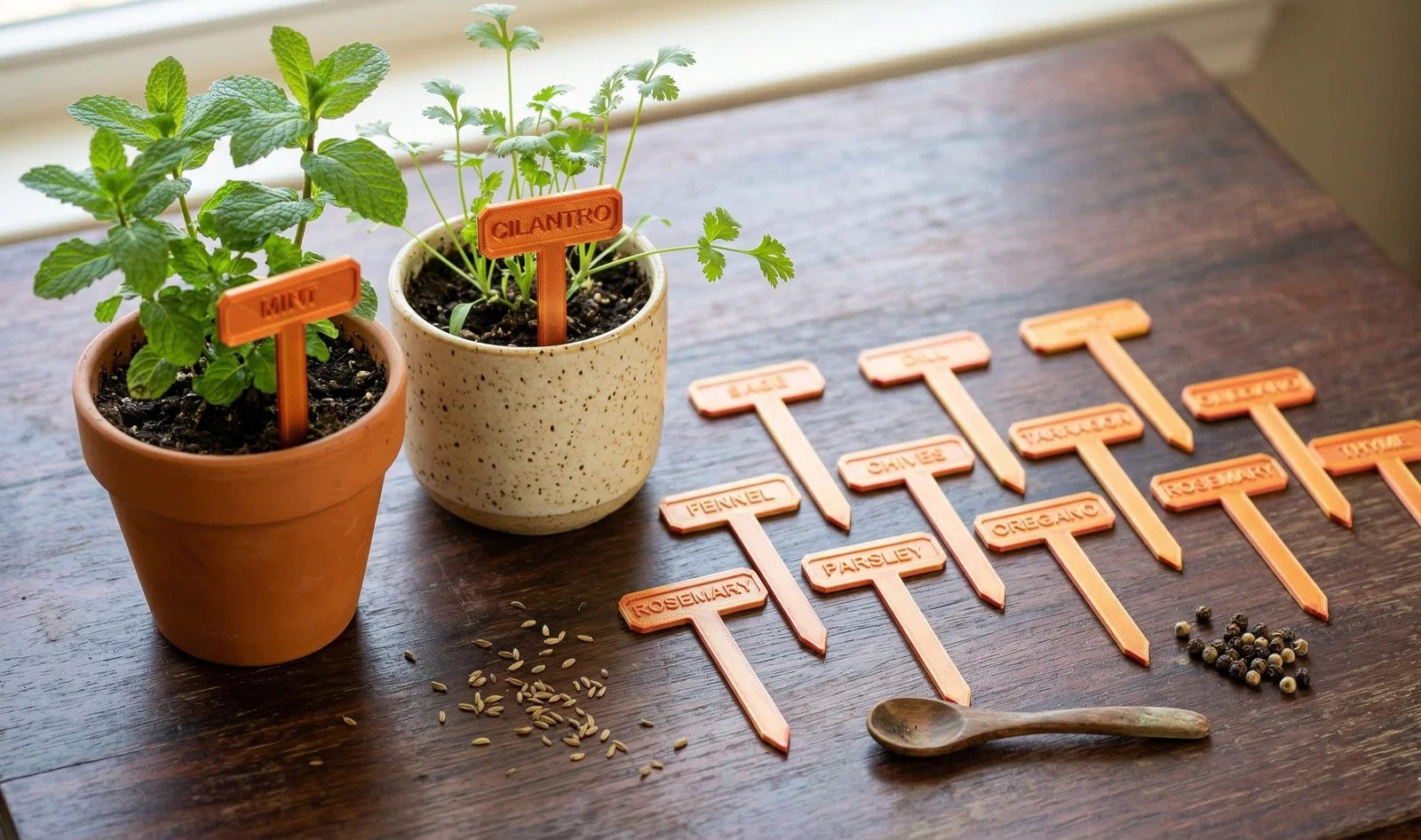 in 3d, thẻ đánh dấu thảo mộc, nhãn dán cây trồng, trang trí sân vườn, màu đồng, ánh kim, lấp lánh, quà tặng sân vườn, thảo mộc nhà bếp, thẻ cây, phụ kiện làm vườn, vườn trong nhà, vườn ngoài trời, bền bỉ, chống nước, húng quế, hương thảo, cỏ xạ hương, bạc hà, ngò rí, ngò tây, kinh giới cay, xô thơm, thì là, tiểu hồi, ngải giấm, hẹ, tái sử dụng, định danh cây trồng, que cắm vườn, quà tặng độc đáo, nhãn chậu cây