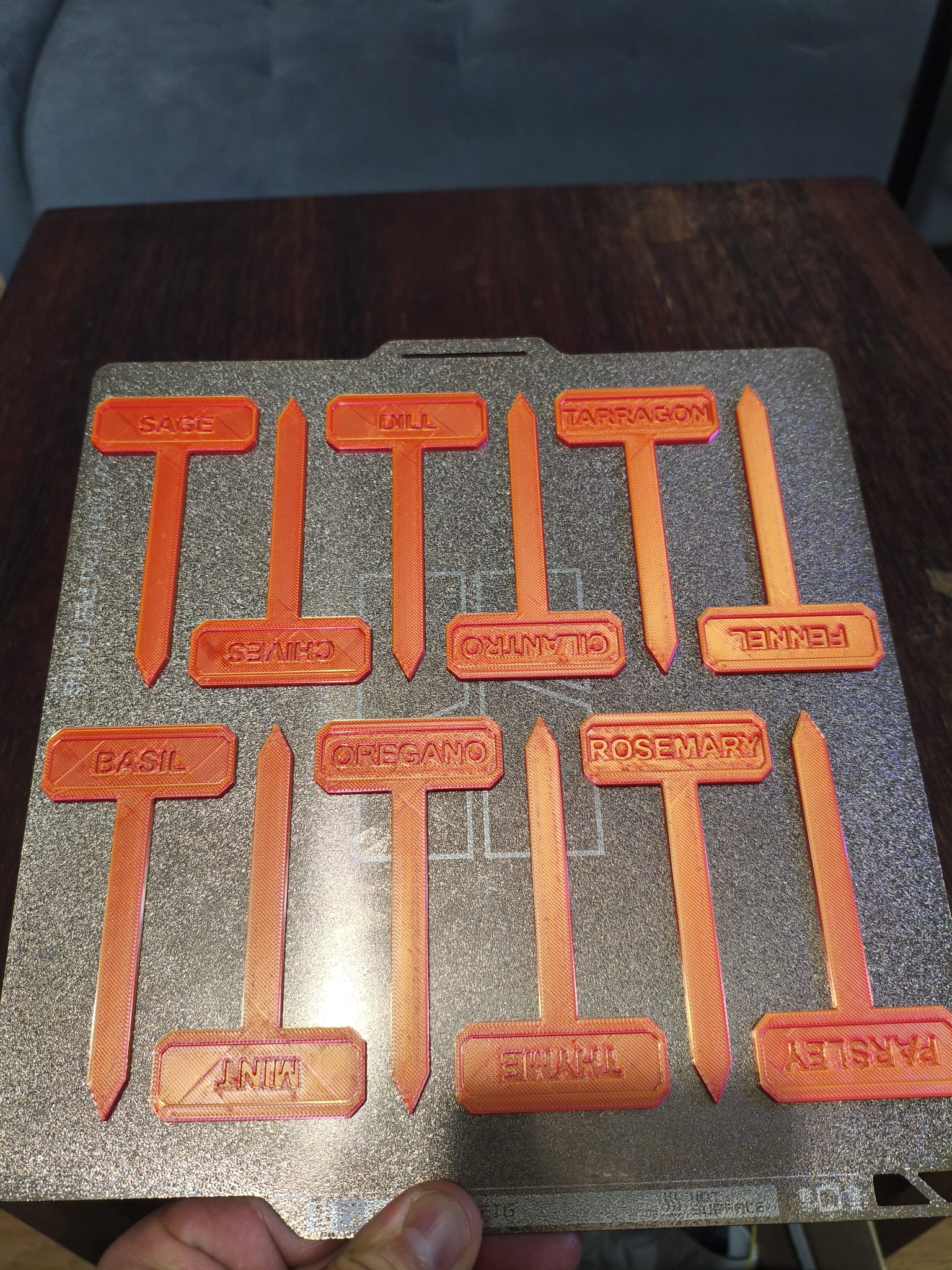 Nâng tầm khu vườn hoặc gian bếp của bạn với bộ 12 thẻ đánh dấu thảo mộc in 3D màu đồng óng ánh. Sản phẩm được chế tác tỉ mỉ, bền bỉ, chống nước, giúp nhận diện cây trồng dễ dàng và mang lại vẻ đẹp hiện đại, tinh tế cho không gian sống của bạn.